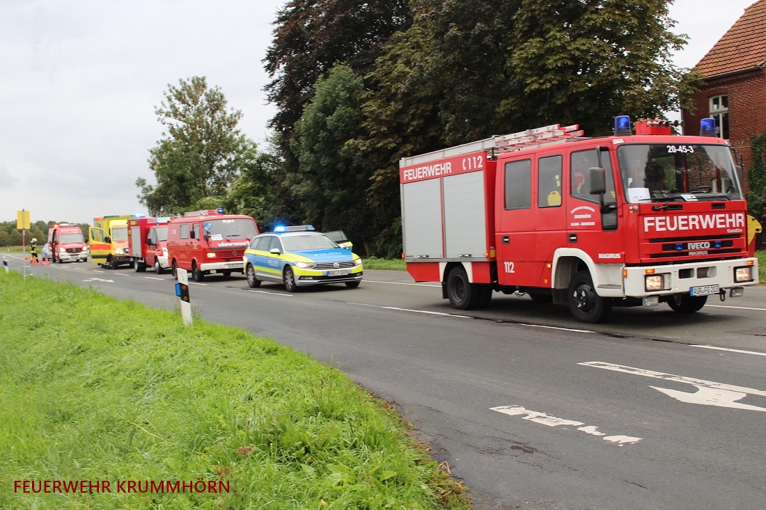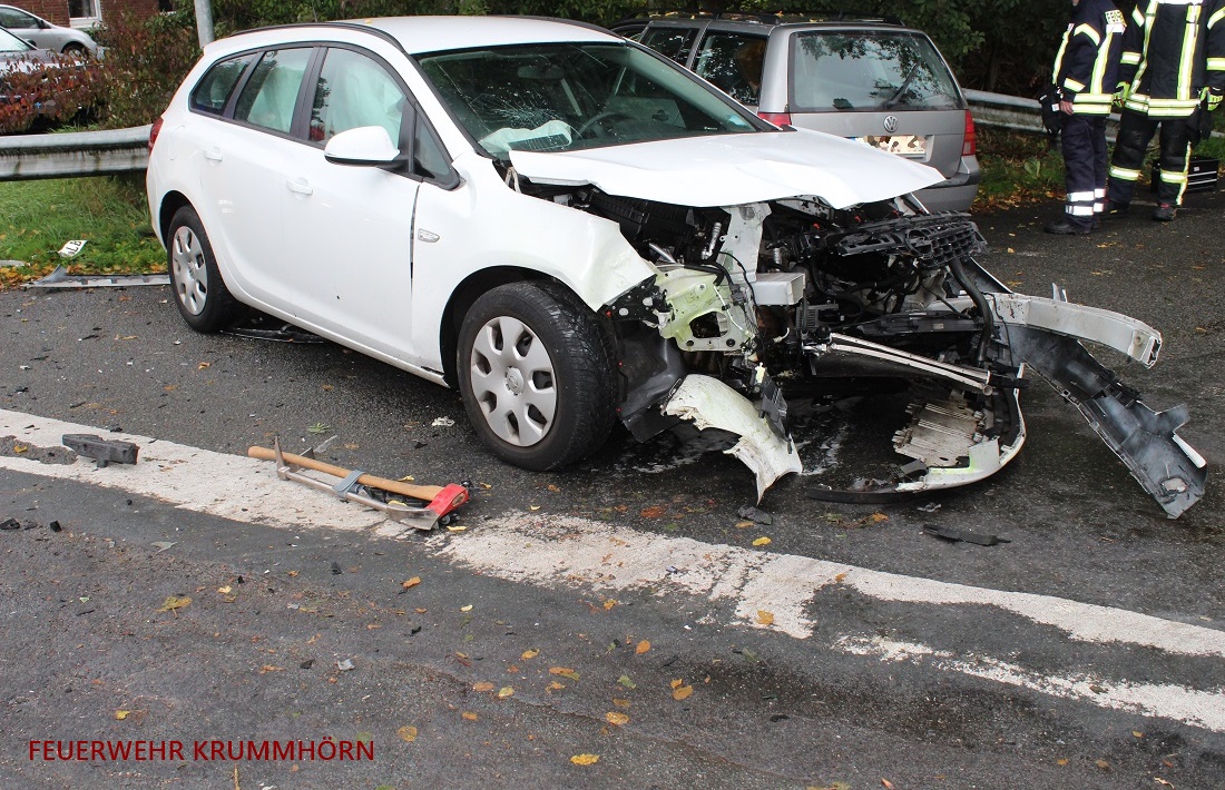 Am Mittwochmorgen, gegen 08:50 Uhr, wurden die Feuerwehren Krummhörn-Ost, Krummhörn-Nord und die ELW-Gruppe zu einem Fahrzeugbrand nach einem Verkehrsunfall alarmiert. Im Kreuzungsbereich der Schoonorther Straße und dem Störtebeker Weg hatte sich ein Verkehrsunfall mit zwei beteiligten PKW ereignet. Laut Einsatzmeldung sollte dort ein Fahrzeug in Brand stehen.