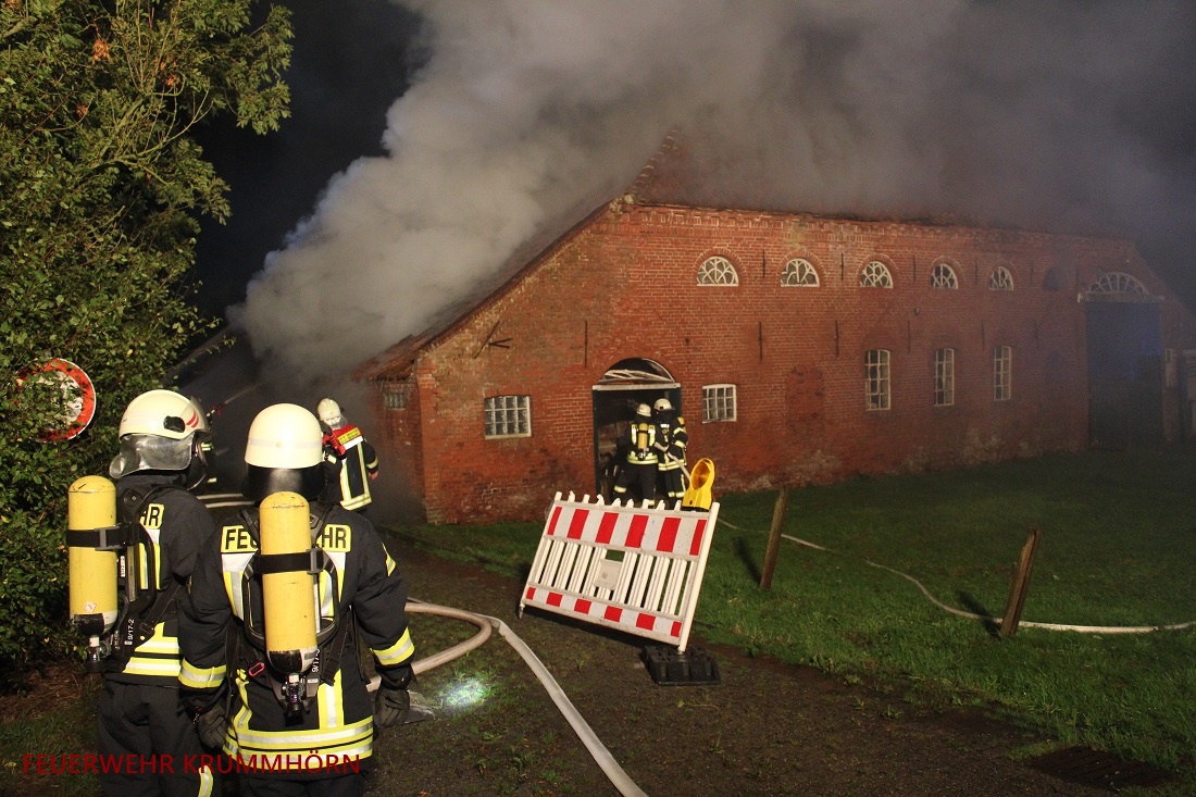Ein Anrufer meldete Dienstagnacht einen Brand eines landwirtschaftlichen Gebäudes in der Meestereistraße in Manslagt. Daraufhin alarmierte die Leitstelle Ostfriesland gegen 03:40 Uhr mehrere Feuerwehren sowie den Einsatzleitwagen der Gemeinde Krummhörn.