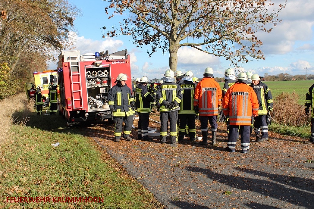 Die zwei Krummhörner Feuerwehren waren mit rund 55 Einsatzkräften und 8 Fahrzeugen vor Ort.