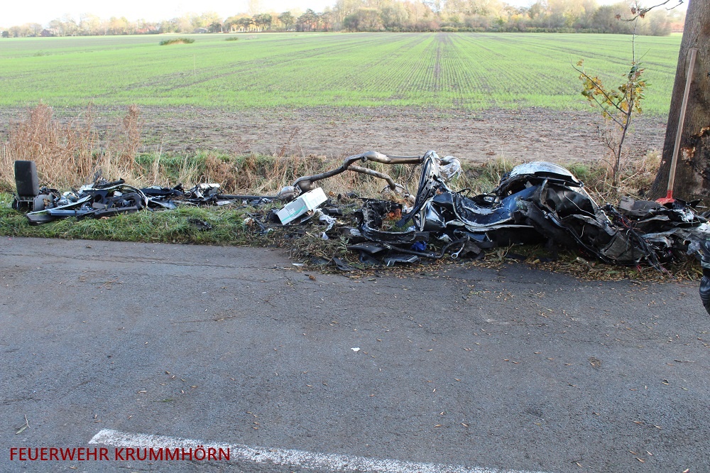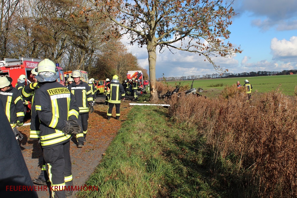 Die Feuerwehren Krummhörn-Ost, Pewsum-Woltzeten und Norden wurden am Sonntagnachmittag gegen 13:10 Uhr in die Greetsieler Straße alarmiert. Ein Pkw war frontal gegen einen Baum geprallt. Der Fahrer des PKW wurde dabei eingeklemmt. Für den Insassen des verunfallten PKW kam jede Hilfe zu spät.