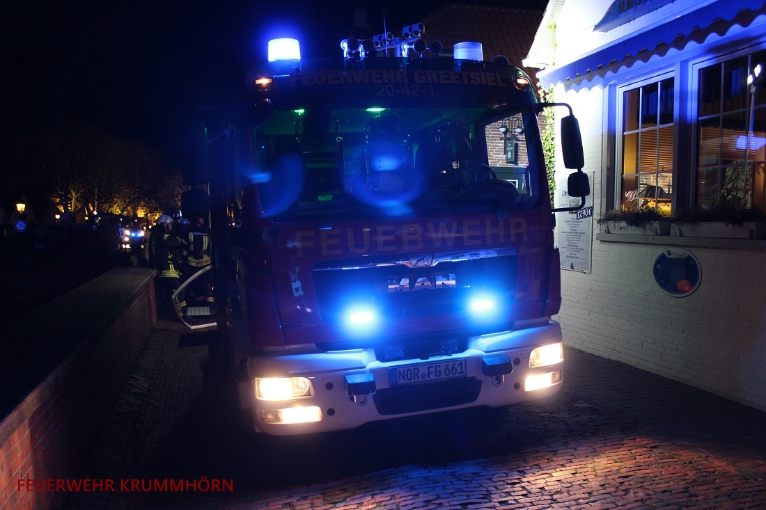 Die Leitstelle Ostfriesland alarmierte daraufhin gegen 18:50 Uhr die Feuerwehren Krummhörn-Nord, Krummhörn-Ost und die Einsatzleitwagen-Gruppe mit dem Stichwort "Mittelbrand."