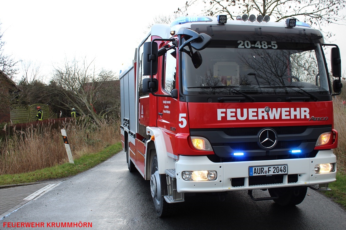 Die Feuerwehr Pewsum-Woltzeten musste am Dienstag, 08.01.2019, um 12:39 Uhr in die Ludgerstraße ausrücken. Dort war infolge des Sturmtiefs "Benjamin" ein Baum auf einen Teil eines Gebäudes gestürzt. Die Einsatzkräfte zogen den Baum mit Hilfe des Tanklöschfahrzeuges aus dem Gefahrenbereich und legten diesen neben dem Gebäude ab.