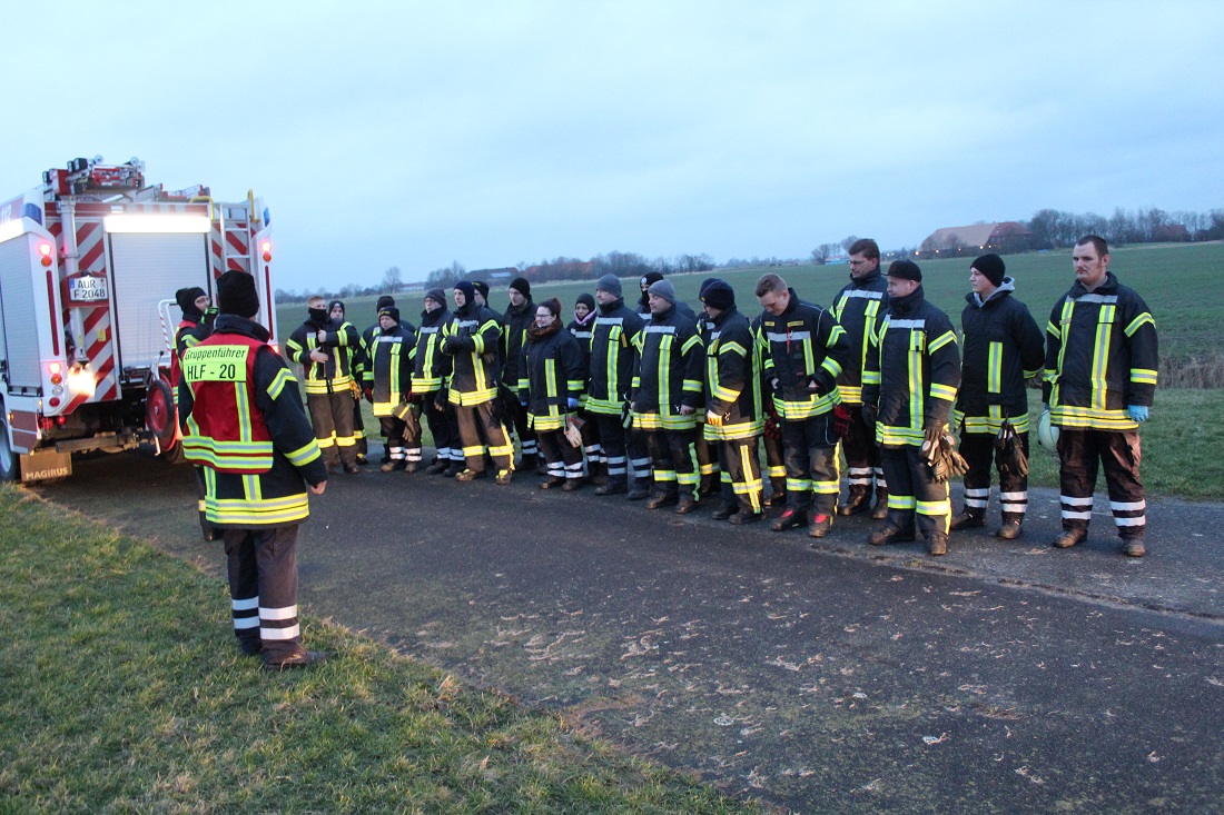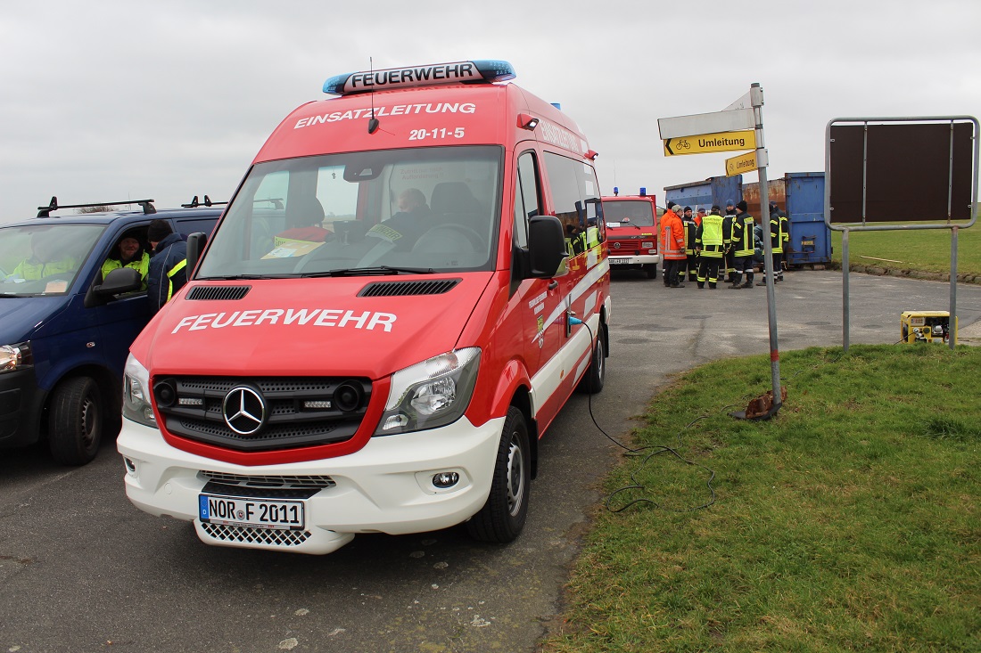 Die Führungskräfte der Feuerwehr Krummhörn trafen sich bereits am Samstagmorgen mit Vertretern der Deichacht Krummhörn, die die Feuerwehr um Hilfe bat. Die Führungskräfte fuhren gemeinsam mit den Vertretern der Deichacht Krummhörn die Deichlinie ab, um sich ein genaues Bild von der Lage zu machen. Im Anschluss wurde der Großeinsatz der Krummhörner Feuerwehr geplant.