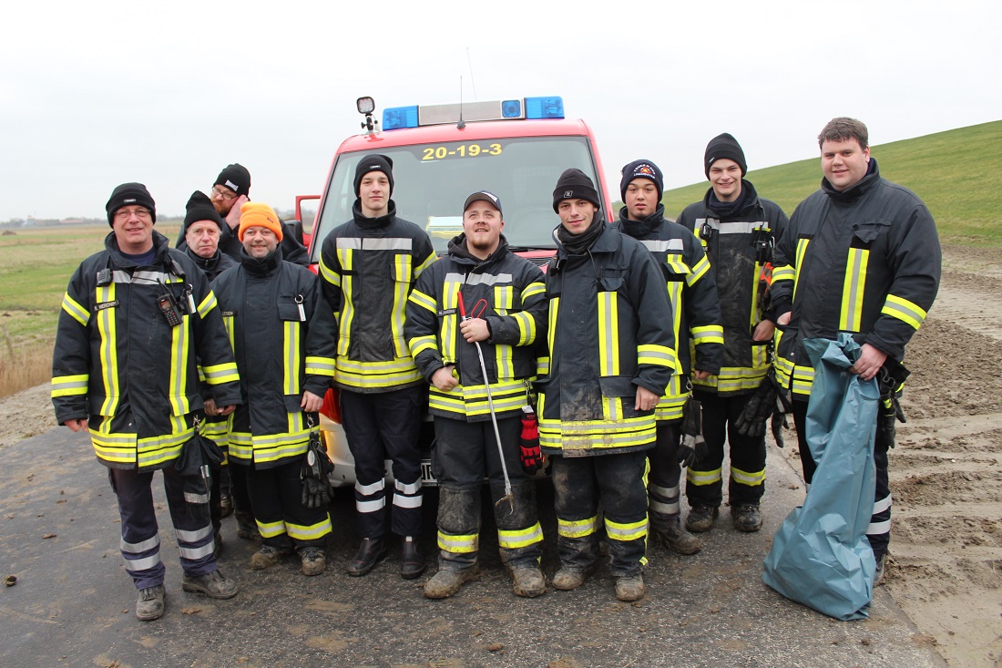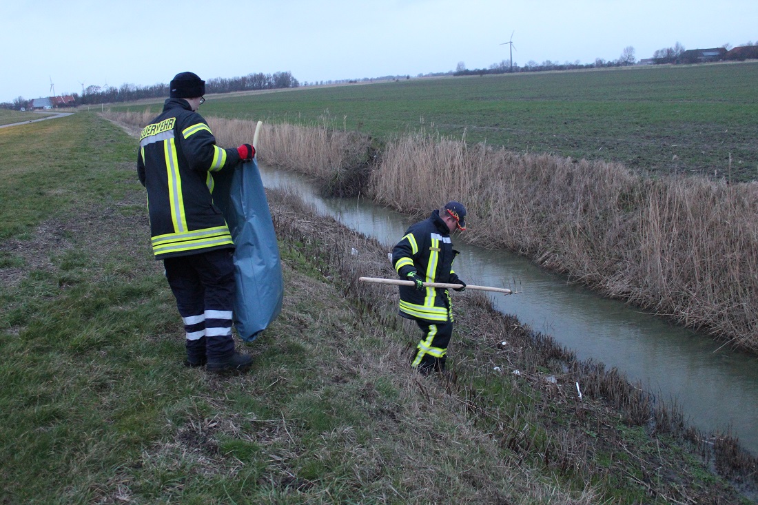 Die gesamte Krummhörner Deichlinie wurde in sieben Abschnitte aufgeteilt, in denen die Einsatzkräfte dann eingesetzt wurden, um den Deich vom angespülten Müll zu befreien. Im Einsatzverlauf fanden die Krummhörner Feuerwehrleute drei verendete Tiere und kleine Menge an Gefahrgut vor. Das Gefahrgut wurde gesondert der Entsorgung zugeführt.