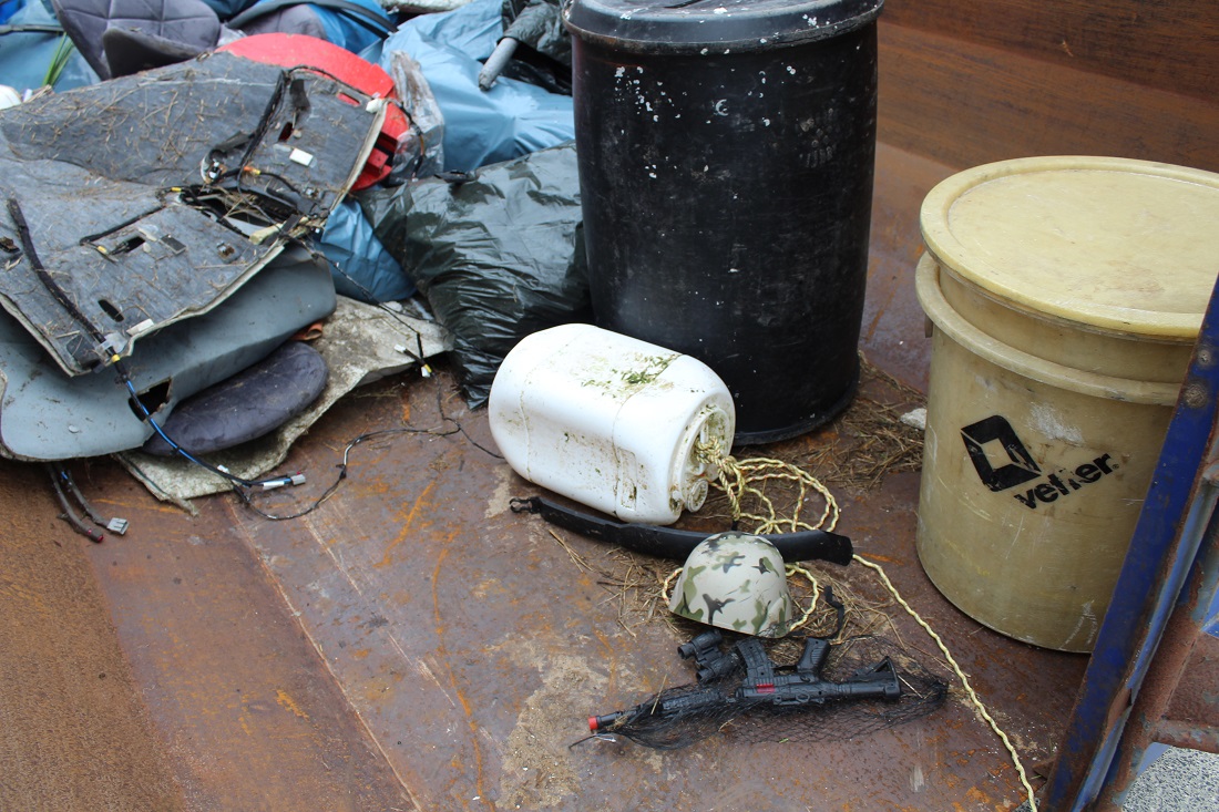 Gegen Mittag hatten die Einsatzkräfte die gesamte Deichlinie auf einer Länge von 23km vom angespülten Müll befreit. Insgesamt wurden etwa 35 Kubikmeter Müll von den Einsatzkräften eingesammelt. Mitarbeiter der Deichacht übernahmen während des Einsatzes den Abtransport des Mülls zu einem Container. Vermehrt wurden Elektrokerzen, Bleche, Styropor und Dosierpumpen vorgefunden.