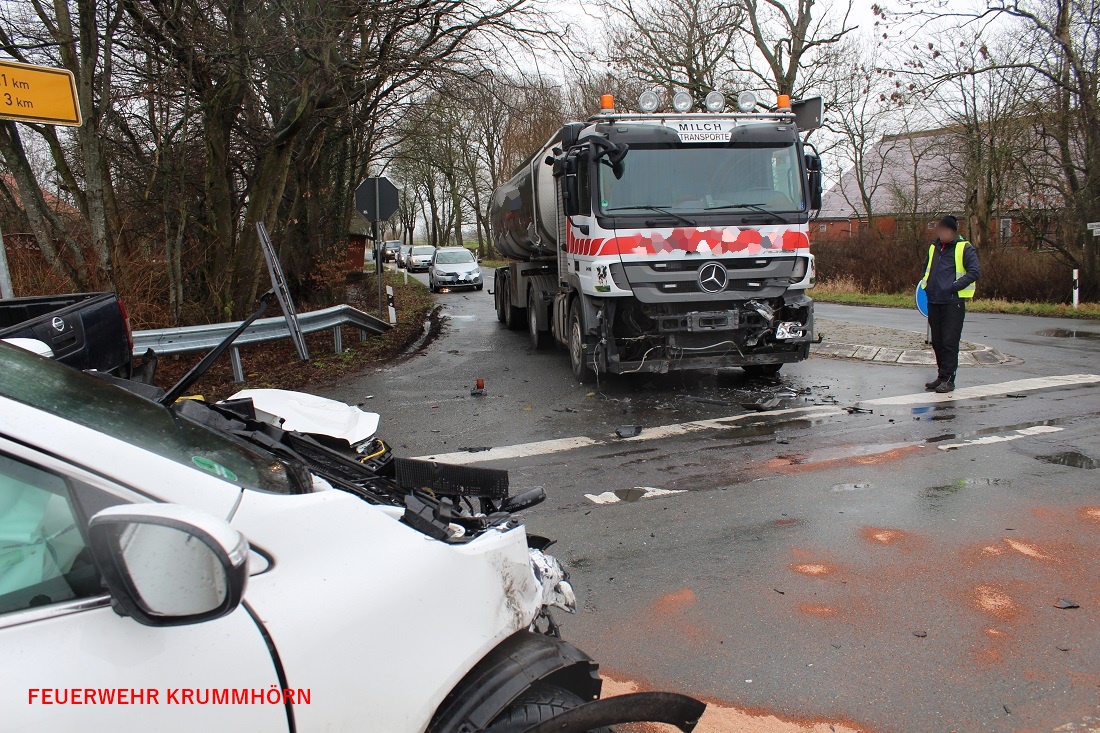 Auf der Schoonorther Straße, Kreuzung Störtebeker Straße hatte sich ein Verkehrsunfall zwischen einem Lastkraftwagen und zwei Personenkraftwagen ereignet.