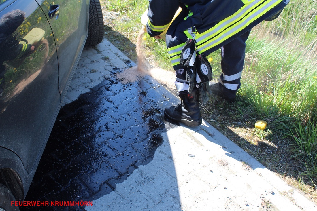 Die angerückten Einsatzkräfte streuten das ausgelaufene Motoröl ab und nahmen dieses anschließend auf. Zudem wurde der betroffene Erdbereich abgetragen und gesondert aufgenommen.