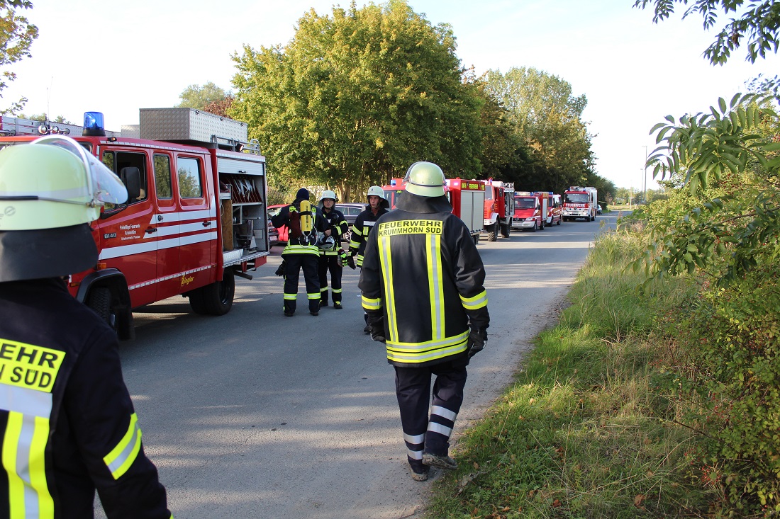 Im Einsatz waren rund 60 Einsatzkräfte der drei Krummhörner Ortsfeuerwehren. Beobachtet wurde die Einsatzübung von Vertretern der Gemeinde Krummhörn und des Landkreises Aurich sowie dem Krummhörner Gemeindebrandmeister.