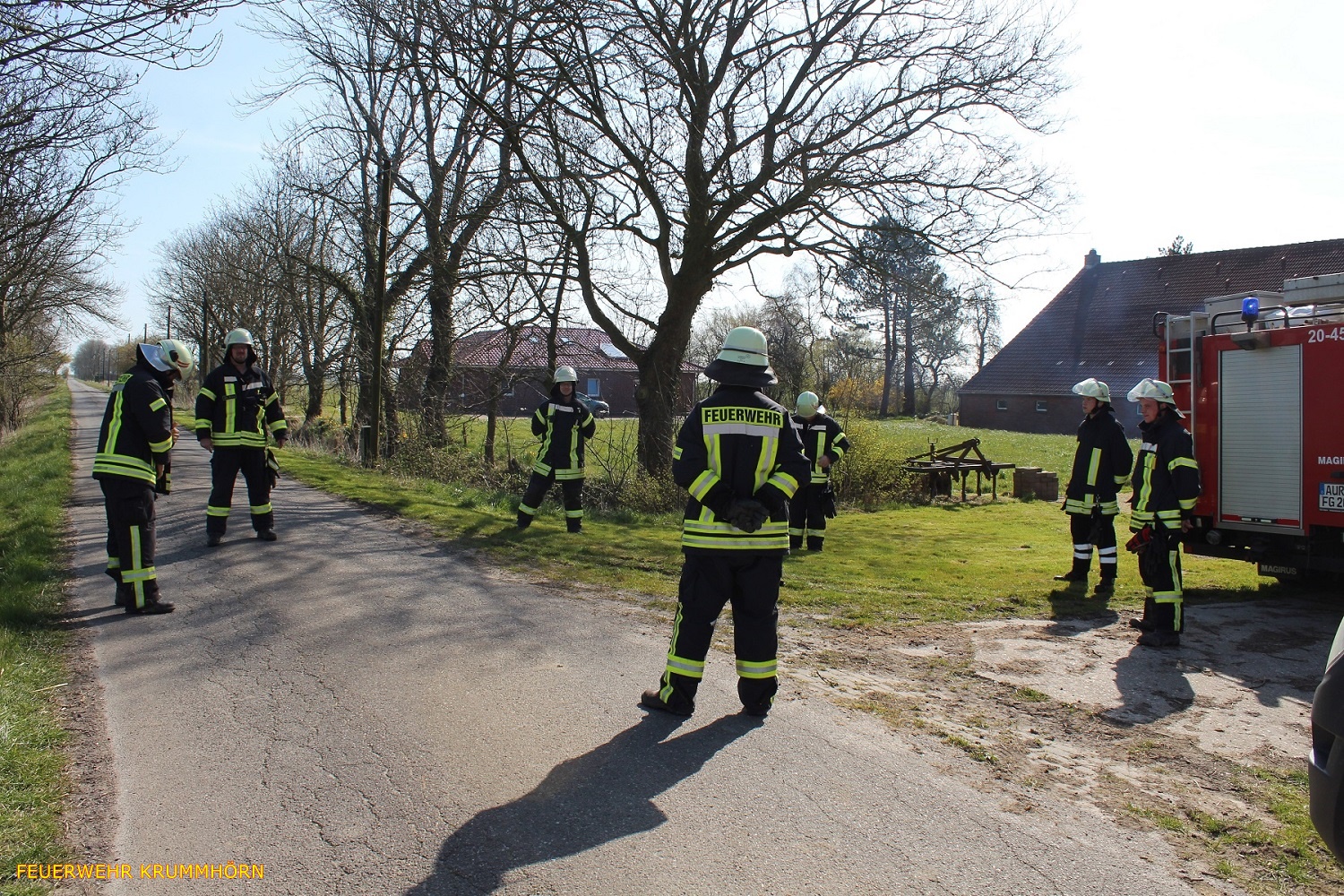 Eine Person bemerkte am Samstagvormittag, den 04.04.2020, in der Deichstraße eine Rauchentwicklung und wählte daraufhin den Notruf 112. Die Regionalleitstelle in Wittmund alarmierte um 11 Uhr daraufhin die Ortsfeuerwehr Krummhörn-Ost. Aufgrund der aktuellen Corona-Krise fuhren lediglich der Ortsbrandmeister der Ortsfeuerwehr und sechs Einsatzkräfte mit dem Löschgruppenfahrzeug 10/6 den Einsatzort an.