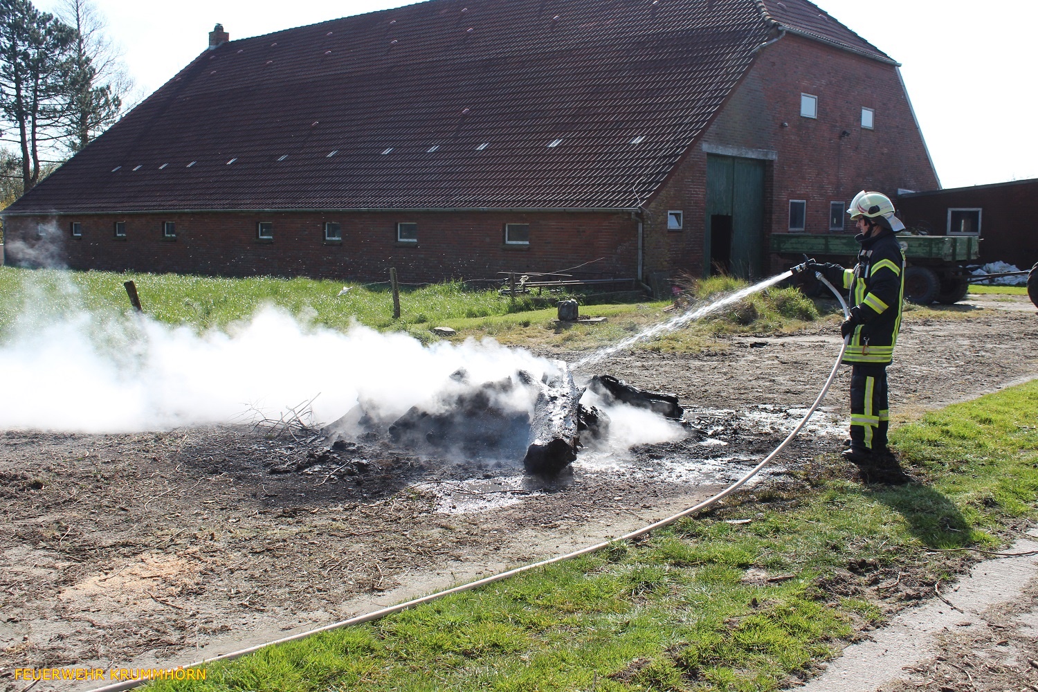 Vor Ort fanden die Feuerwehrleute ein kleineres Nutzfeuer vor. Der brennende Holzhaufen wurde durch die Einsatzkräfte abgelöscht.