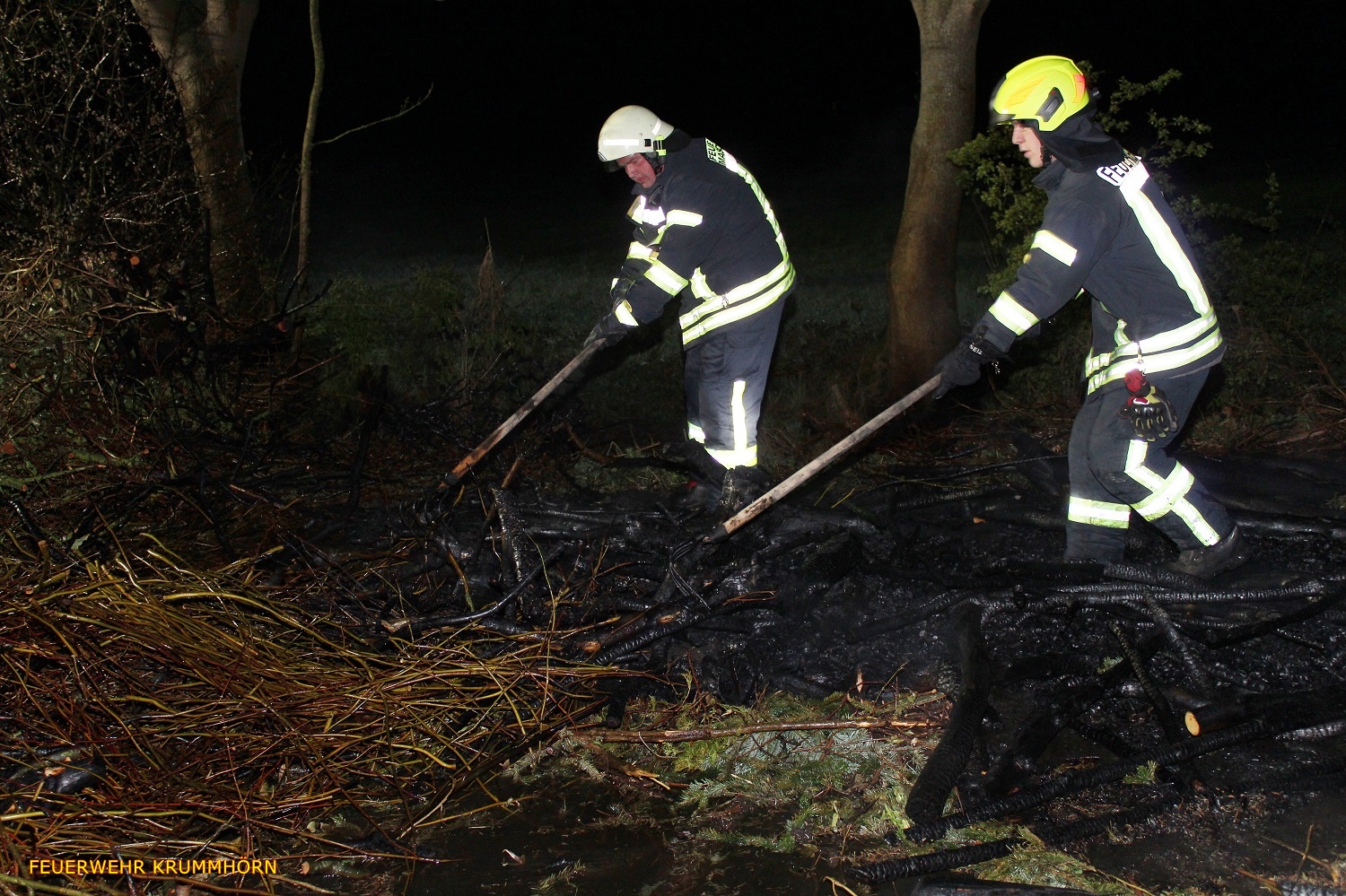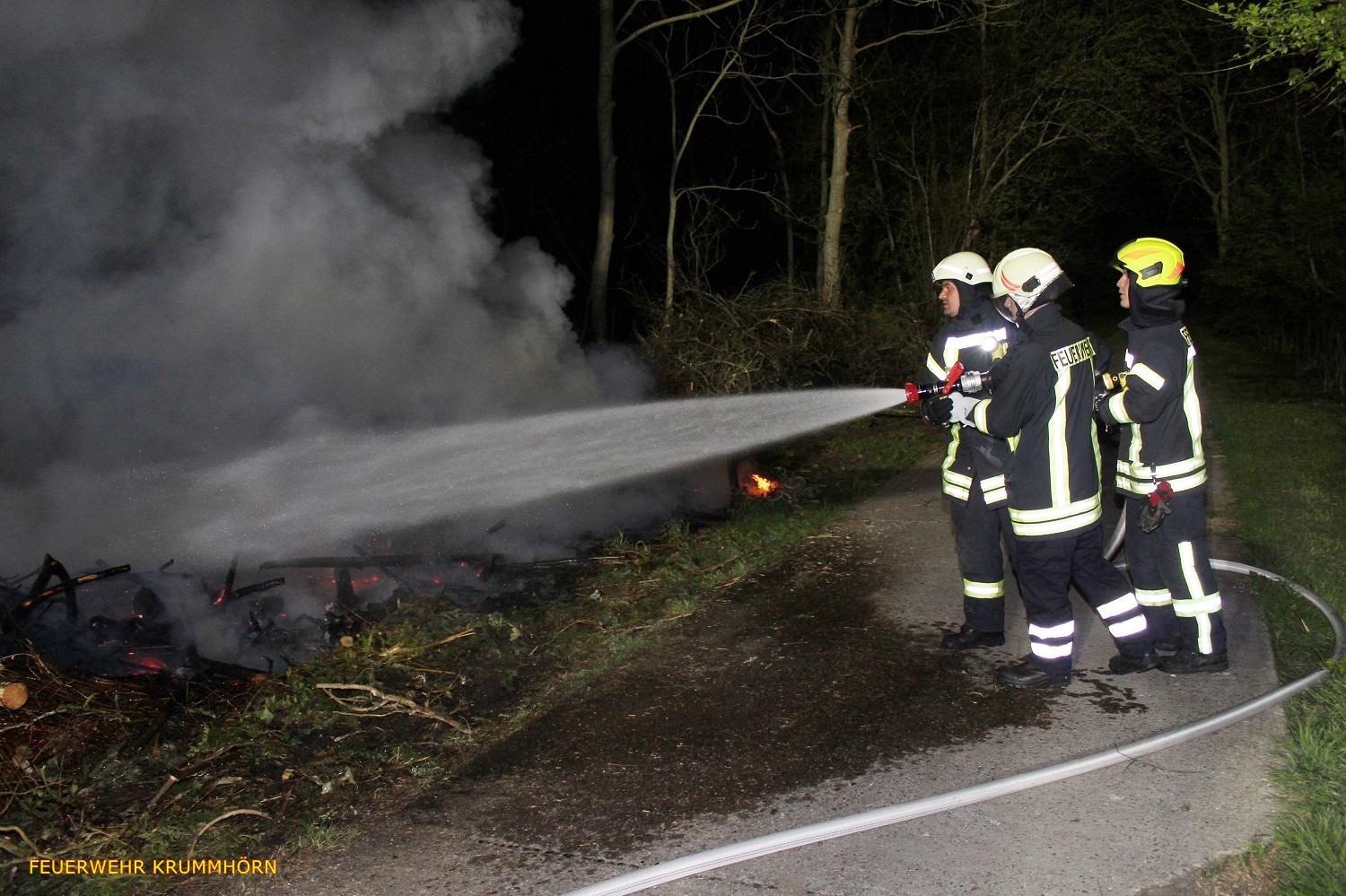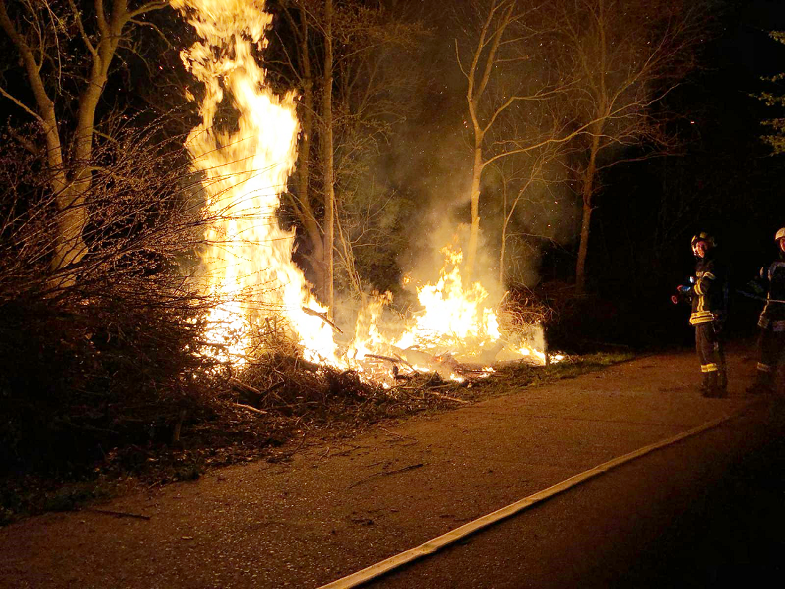 Am späten Samstagabend, den 25.04.2020, musste die Ortsfeuerwehr Pewsum - Woltzeten um 23:21 Uhr in den Tjarksweg in Woltzeten ausrücken. An der dortigen Sammelstelle für das Woltzetener Osterfeuer brannte auf einer Fläche von 50 Quadratmetern Grünschnitt.