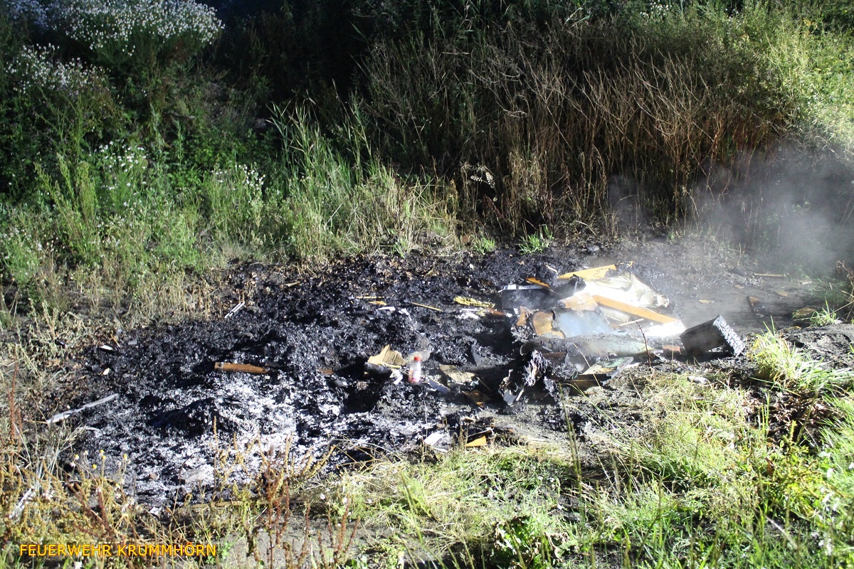 Der brennende Haufen konnte von den Einsatzkräften binnen kürzester Zeit gelöscht werden. Neben der Feuerwehr war auch die Polizei vor Ort.
