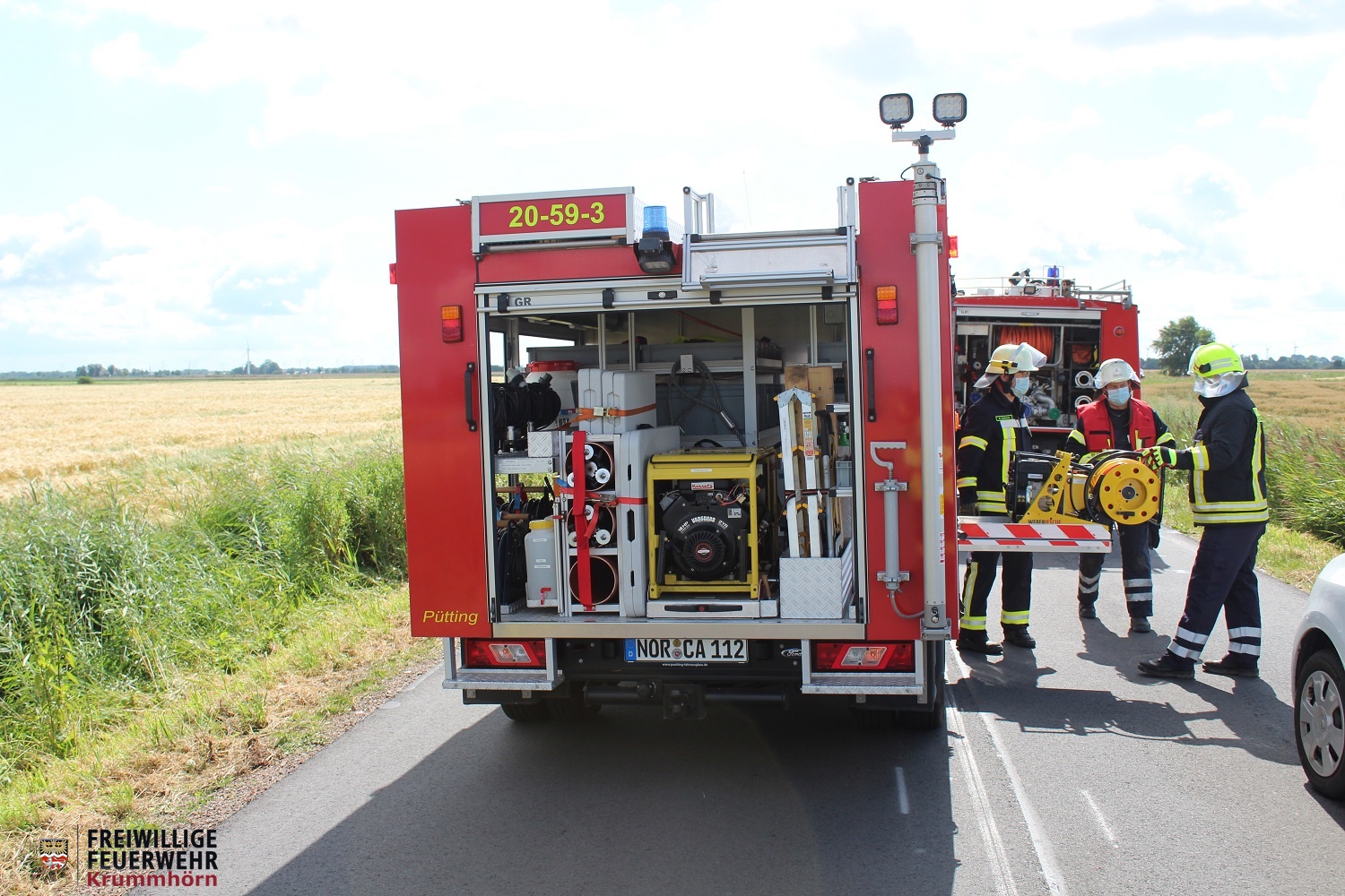 Der zuerst alarmierte Rettungsdienst versorgte die Fahrerin des Fahrzeugs. Um die Patientin zum Rettungswagen transportieren zu können, forderte der Rettungsdienst die Feuerwehr Krummhörn-Süd an.