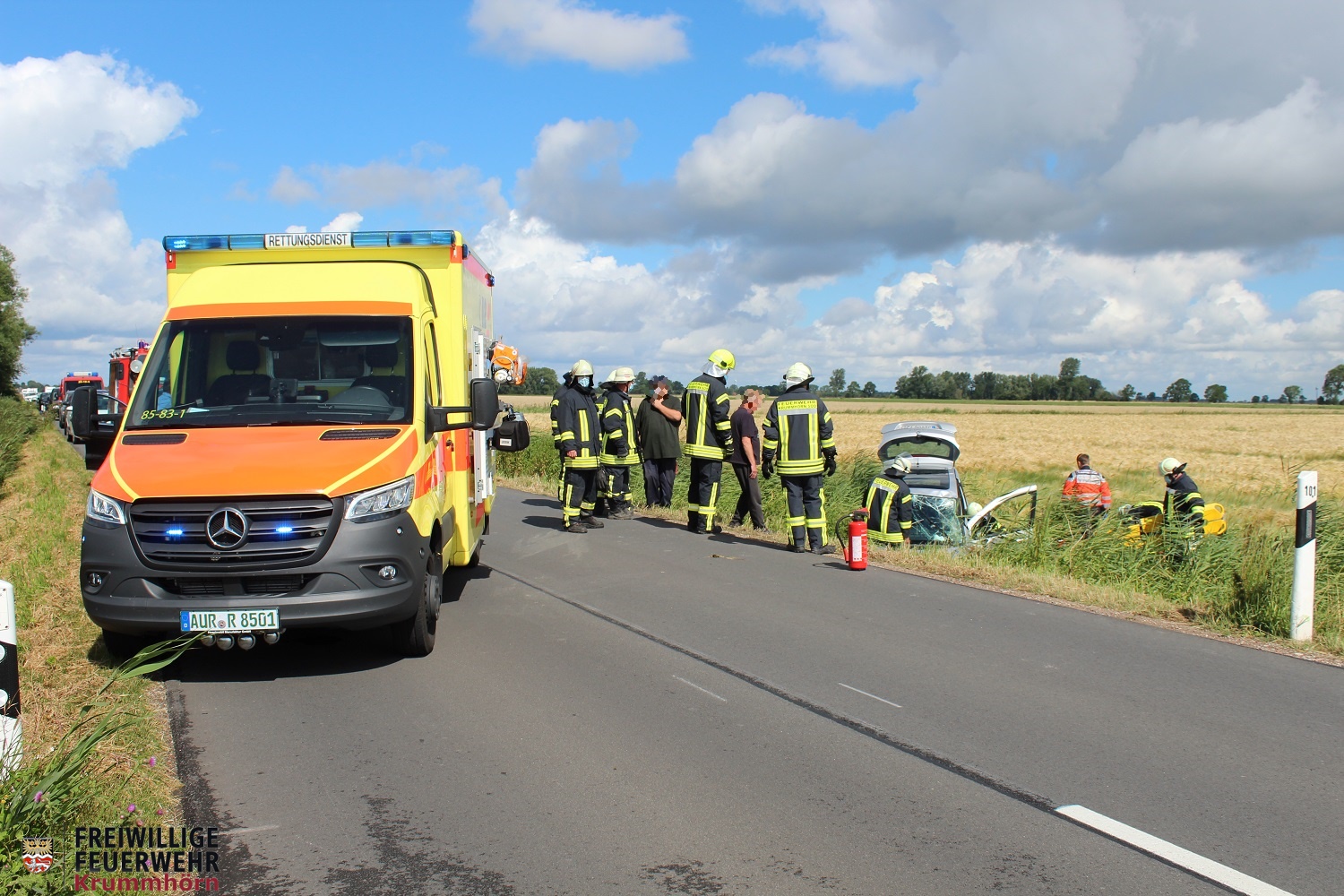 Zur Unterstützung des Rettungsdienstes ist die Feuerwehr Krummhörn-Süd am Sonntagvormittag um 10:50 Uhr alarmiert worden. Ein Fahrzeug war auf der Landesstraße in Fahrtrichtung Rysum von der Fahrbahn abgekommen. Es kam im Graben zum Stehen.