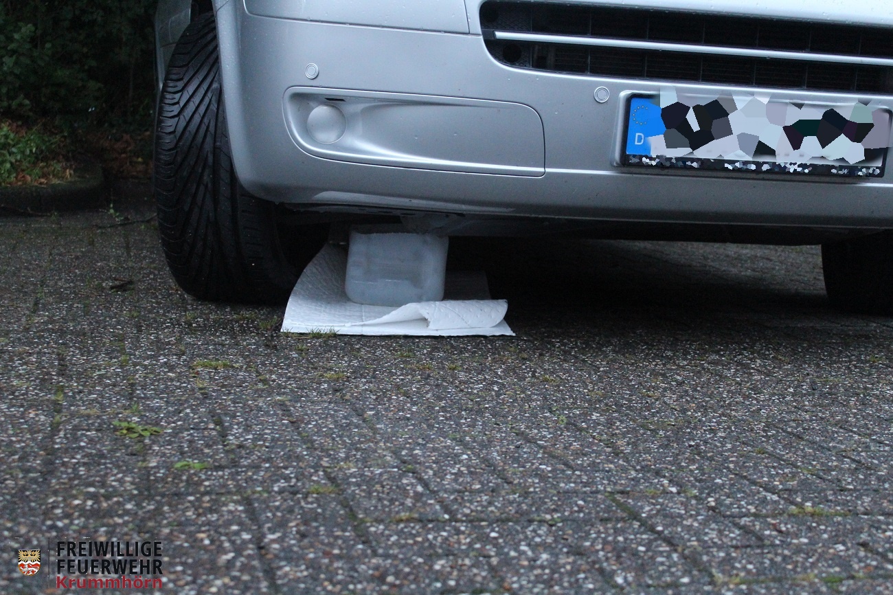 Im Mühlenring in der Krummhörner Ortschaft Canum bemerkte der Fahrer eines Pkw am Mittwochabend, dass aus seinem Fahrzeug Betriebsstoffe ausliefen.