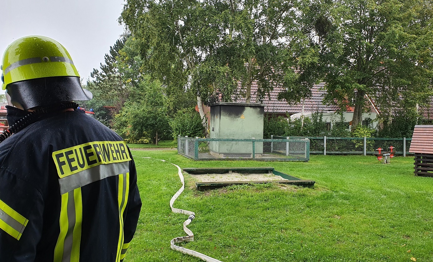 Anwohner meldeten der Regionalleitstelle in Wittmund gegen 14:05 Uhr einen lauten Knall und eine Rauchentwicklung, die von einer elektrischen Anlage am dortigen Spielplatz ausging.