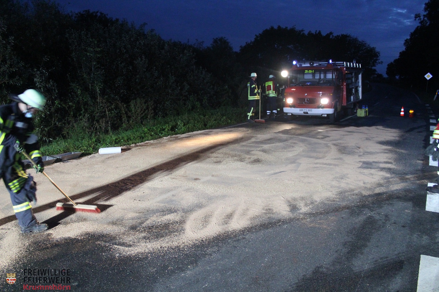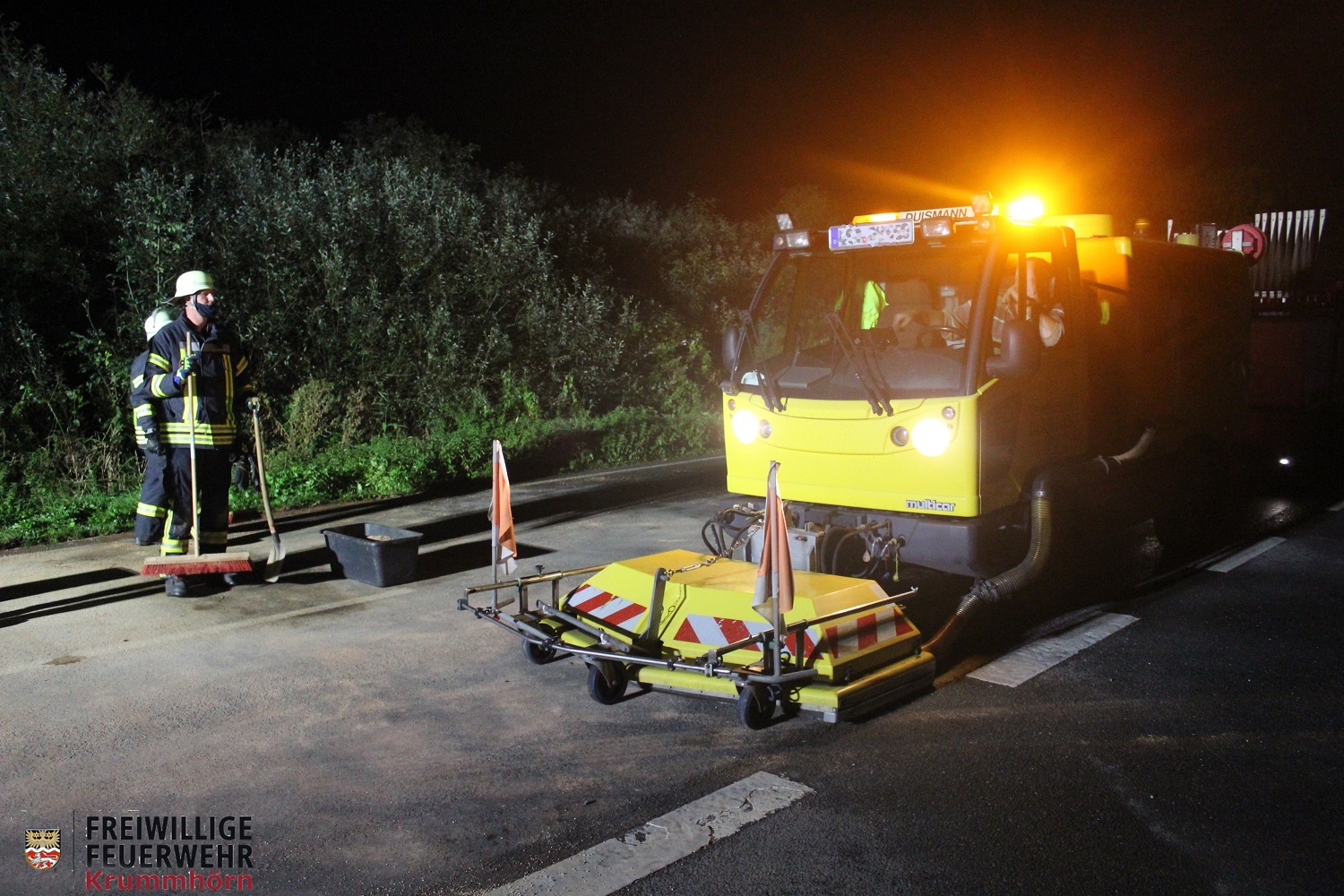 Nach ersten Erkenntnissen wurde bei dem Unfall glücklicherweise niemand verletzt. Die Einsatzkräfte der Feuerwehr verhinderten mit Hilfe von Auffangwannen und durch das Ausbringen von speziellem Bindemittel eine weitere Ausbreitung der Betriebsstoffe.