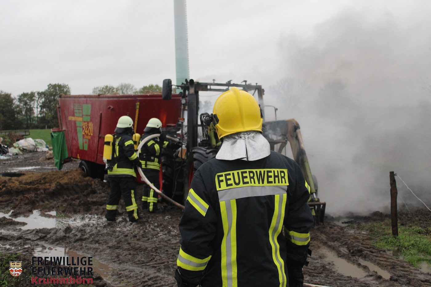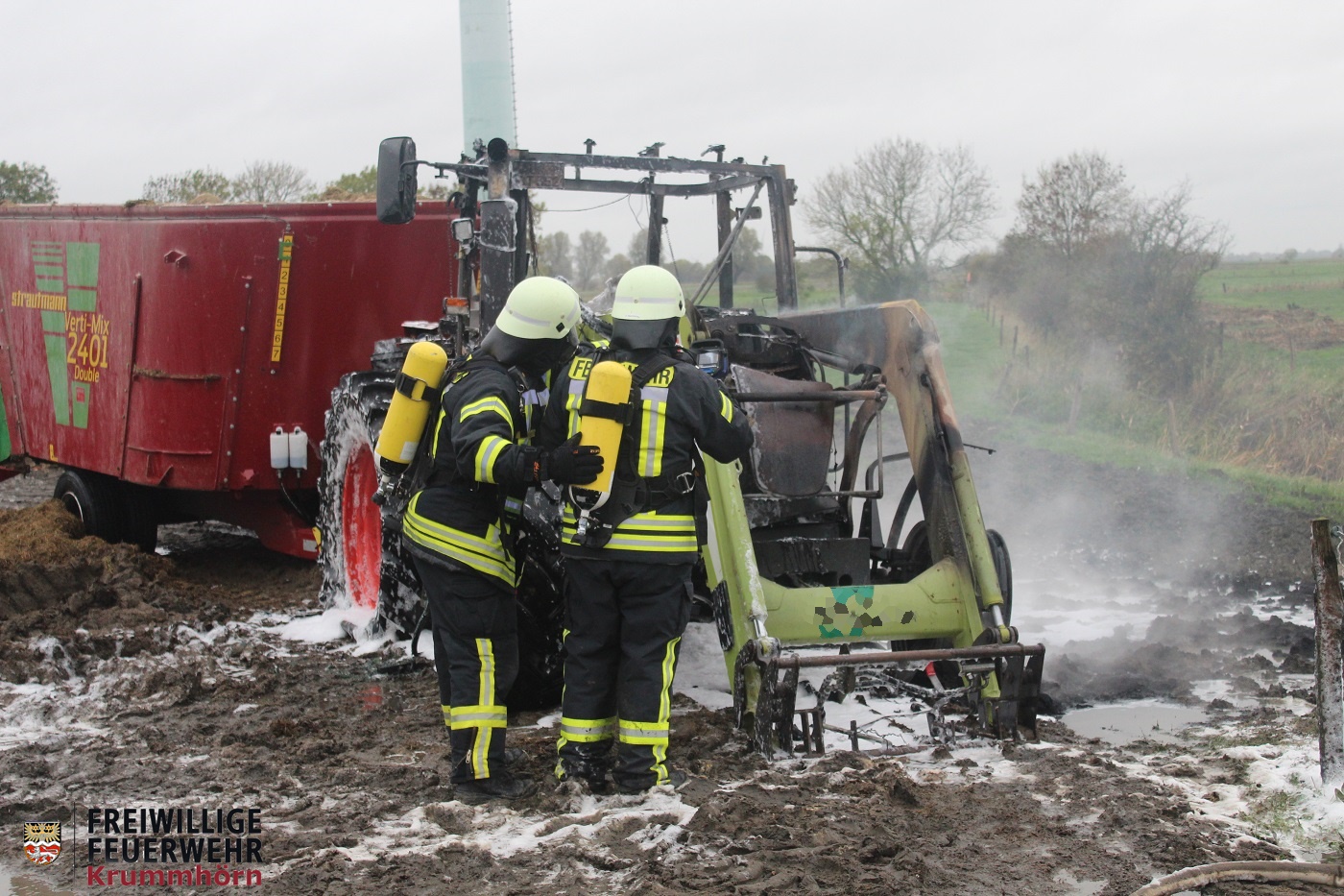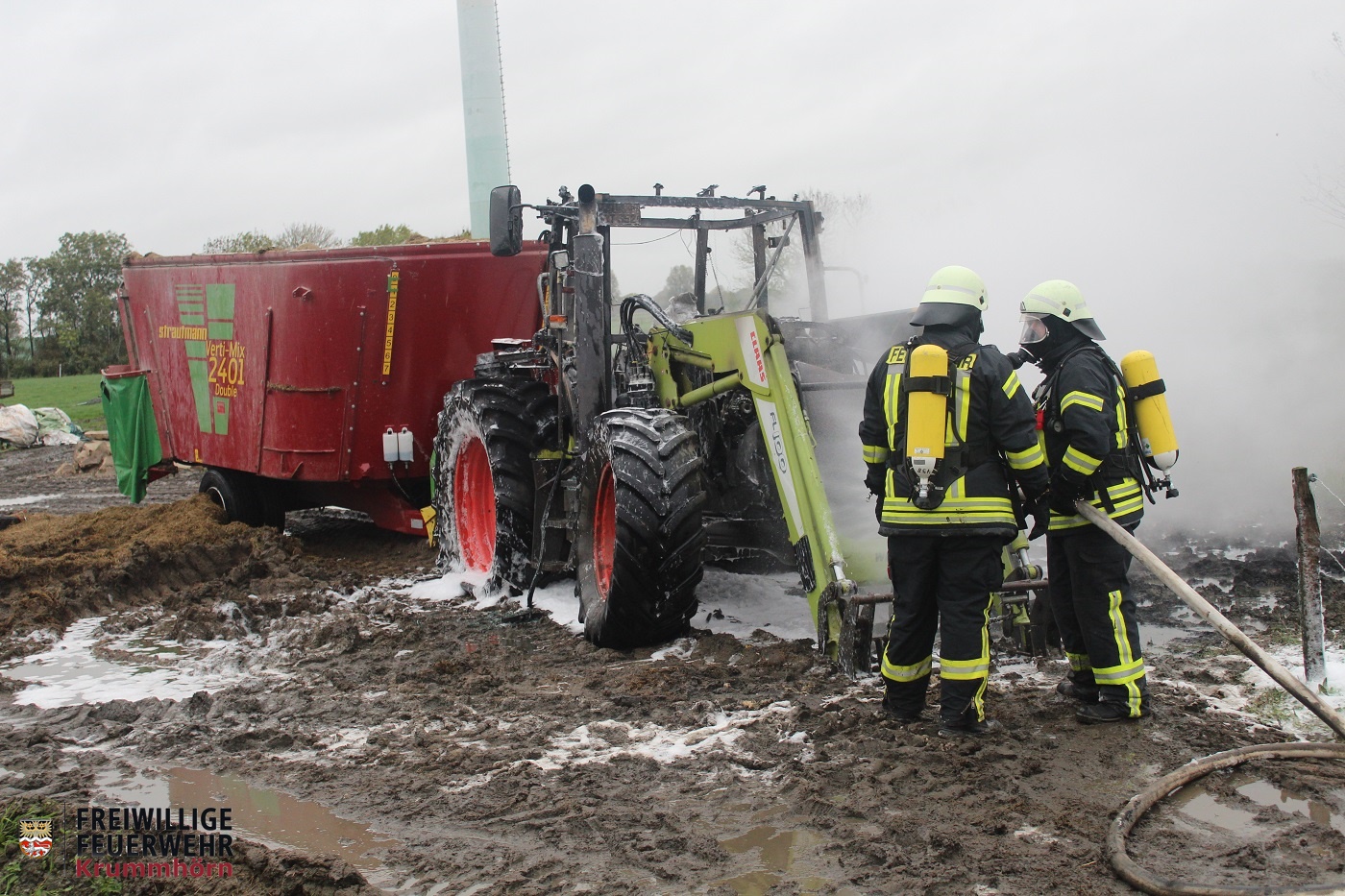 Auf dem Hof eines landwirtschaftlichen Betriebes stand ein Traktor in Brand. Ein Trupp unter Atemschutz konnte das Feuer binnen kurzer Zeit unter Kontrolle bringen. Zur Brandbekämpfung kam unter anderem auch Schaummittel zum Einsatz.