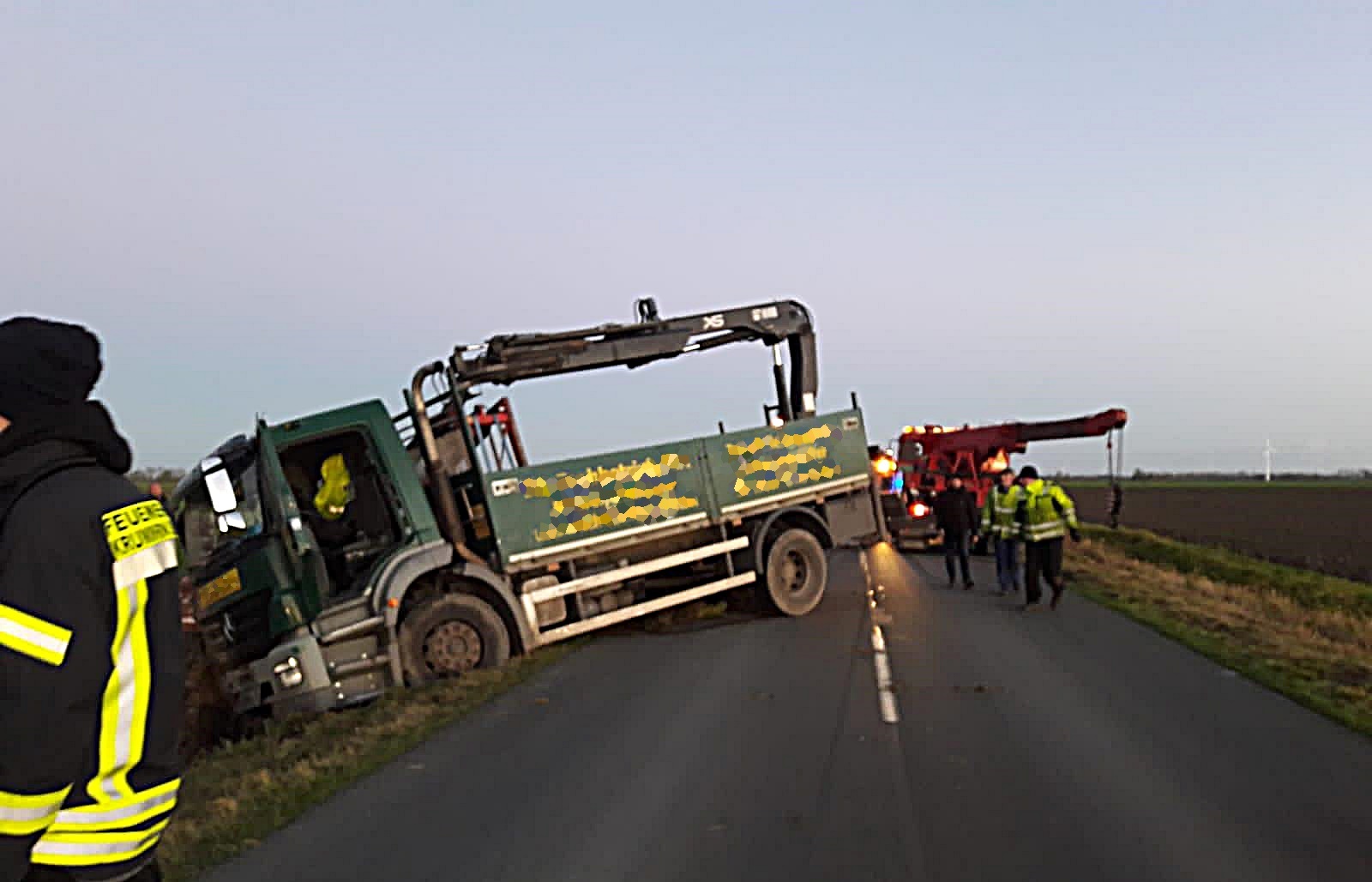 Am Mittwochnachmittag wurde der Ortsbrandmeister der Feuerwehr Krummhörn-Süd zu einer Hilfeleistung nach einem Verkehrsunfall auf die L2 zwischen Rysum und Wybelsum alarmiert. Dort war zuvor ein Lastkraftwagen in einem Graben verunfallt. Die Feuerwehr Krummhörn-Süd wurde zum Ausleuchten der Einsatzstelle benötigt.