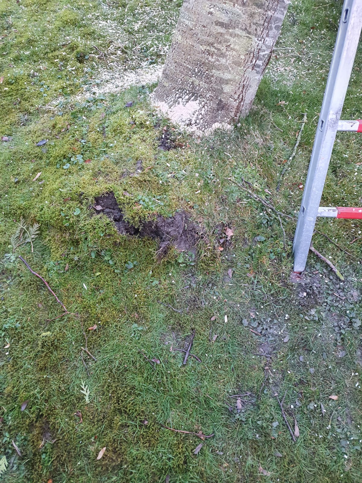 Zunächst sicherten die ausgerückten Einsatzkräfte den Baum mit Hilfe von Steckleiterteilen. Mit einem Hochentaster entfernte die Feuerwehr diverse Äste aus der Baumkrone, um so die Windlast zu reduzieren.