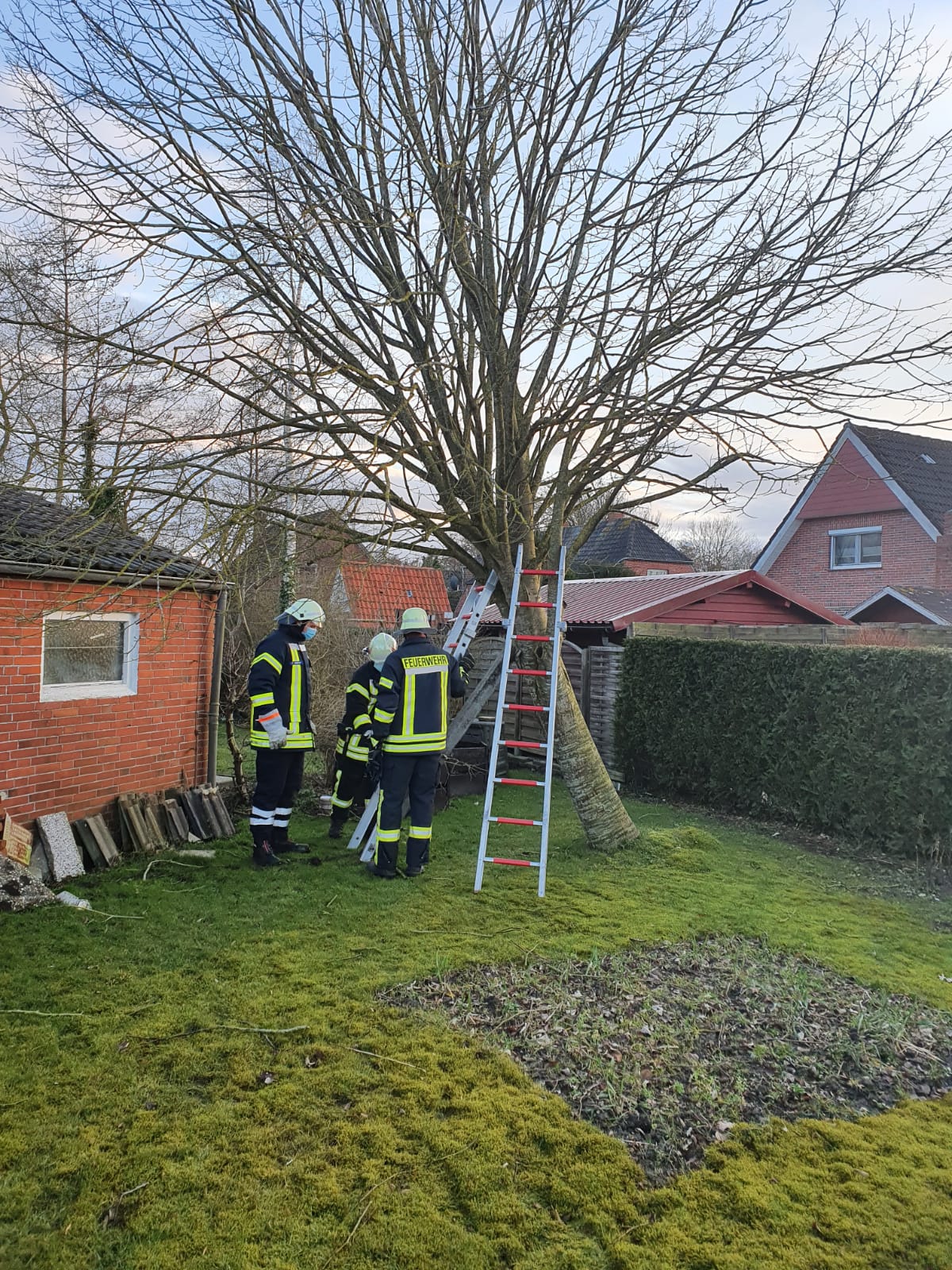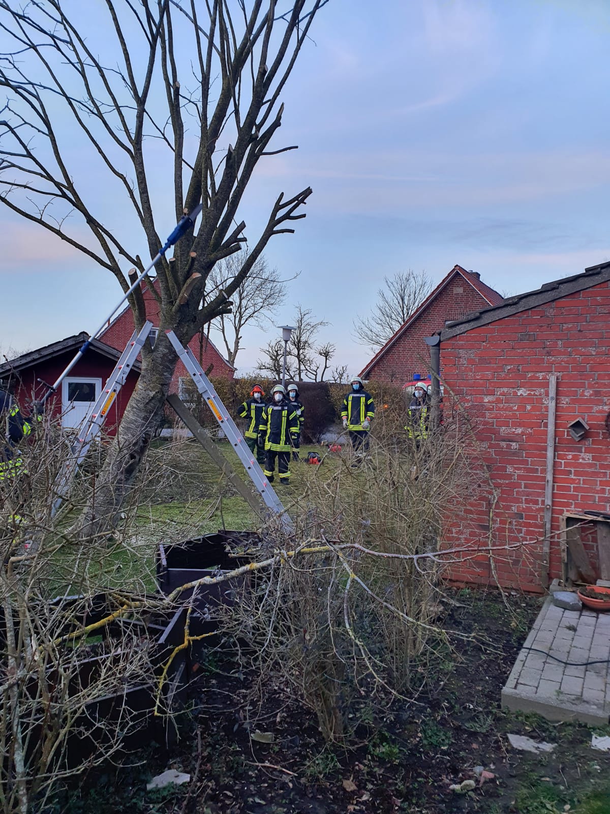 Die Ortsfeuerwehr Krummhörn-Nord ist am Donnerstag um 17:52 Uhr in den Pilsumer Muschelweg alarmiert worden. Dort drohte ein Baum auf ein Gebäude zu stürzen.