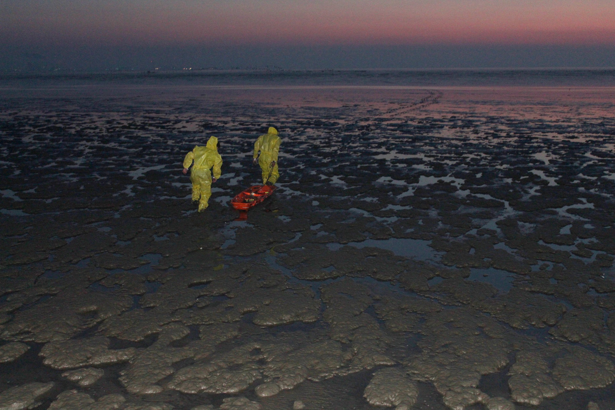 Die Einsatzkräfte hatten anfangs Schwierigkeiten, zu dem Tier zu gelangen. Als zwei Feuerwehrleute dann kurz vor Einbruch der Dunkelheit fast bei dem Wildtier angekommen waren, stand es auf und flüchtete vor den Rettern. Kurze Zeit später war das Tier wieder eigenständig am Festland angekommen.