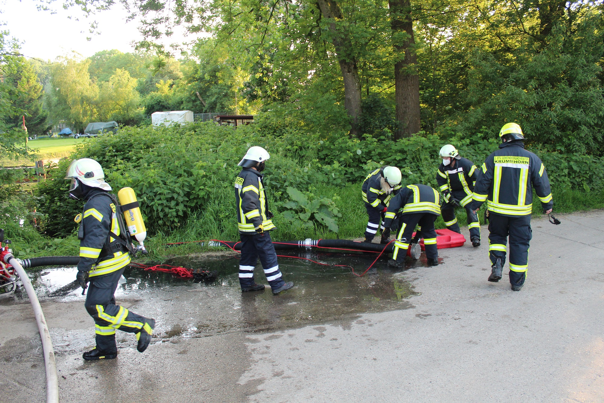 Zur Löschwasserentnahme konnten die Einsatzkräfte der Feuerwehr das unmittelbar angrenzende alte Greetsieler Sieltief nutzen. Hier wurden zwei Tragkraftspritzen in Stellung gebracht, welche das Löschwasser zu den Löschfahrzeugen förderten.