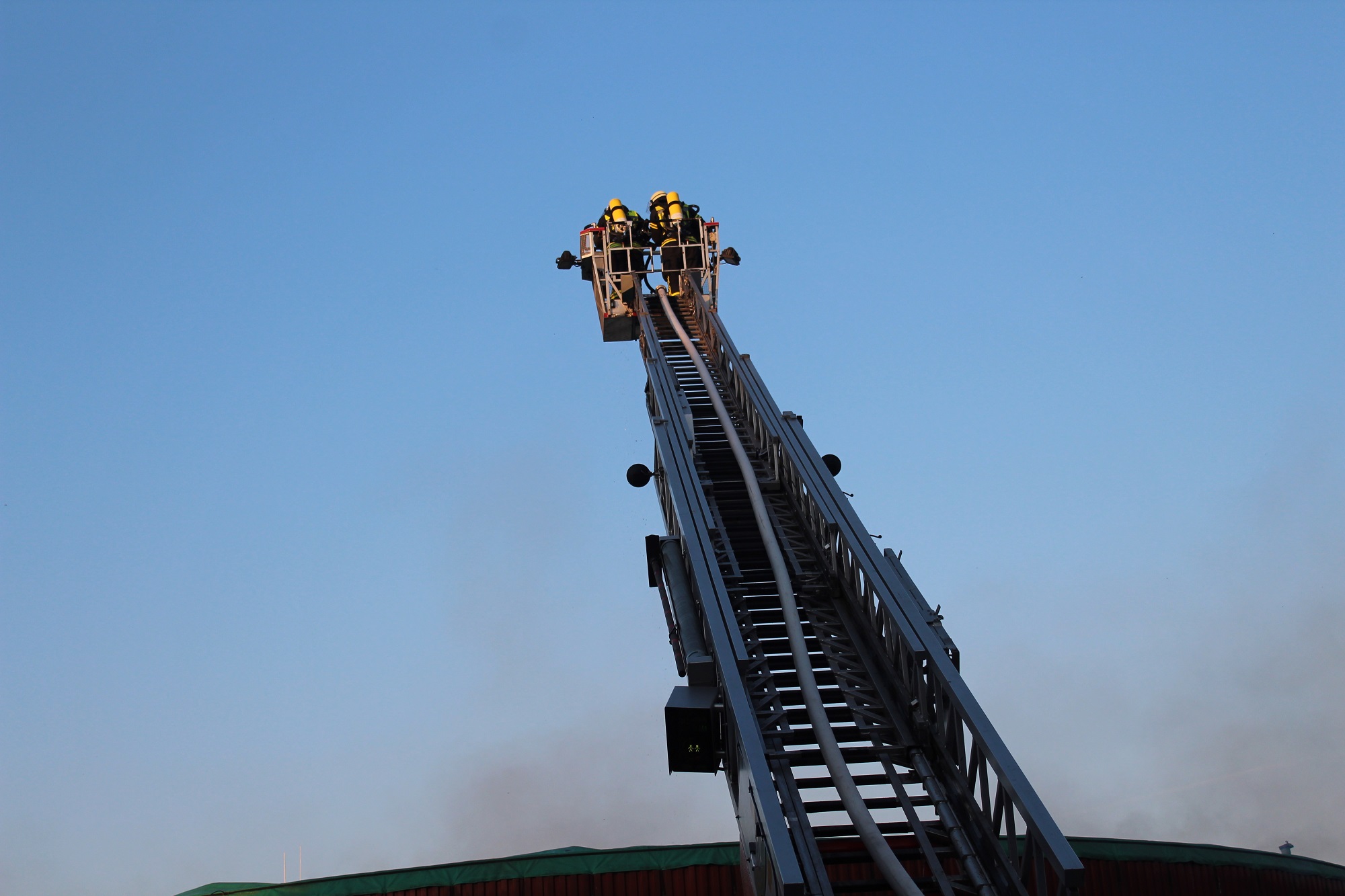 Nach dem Entfernen der Folie war es den Einsatzkräften dann möglich, den Brand von der Drehleiter aus zu bekämpfen. Nach mehr als fünf Stunden war das Feuer gelöscht.