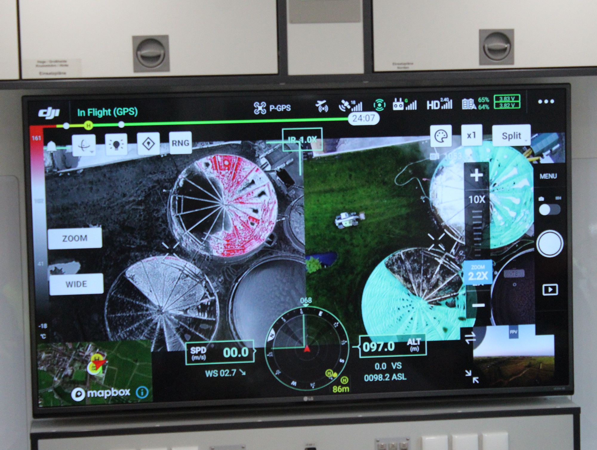 Eine große Hilfe war bei diesem Einsatz die Drohne der Norder Feuerwehr. Mit der Drohne konnte sich die Einsatzleitung ein Bild von oben machen und die Löschmaßnahmen gezielt steuern. Um die Bevölkerung vor der Rauchentwicklung zu warnen, ist im Einsatzverlauf eine Warnung über NINA und Katwarn ausgegeben worden.