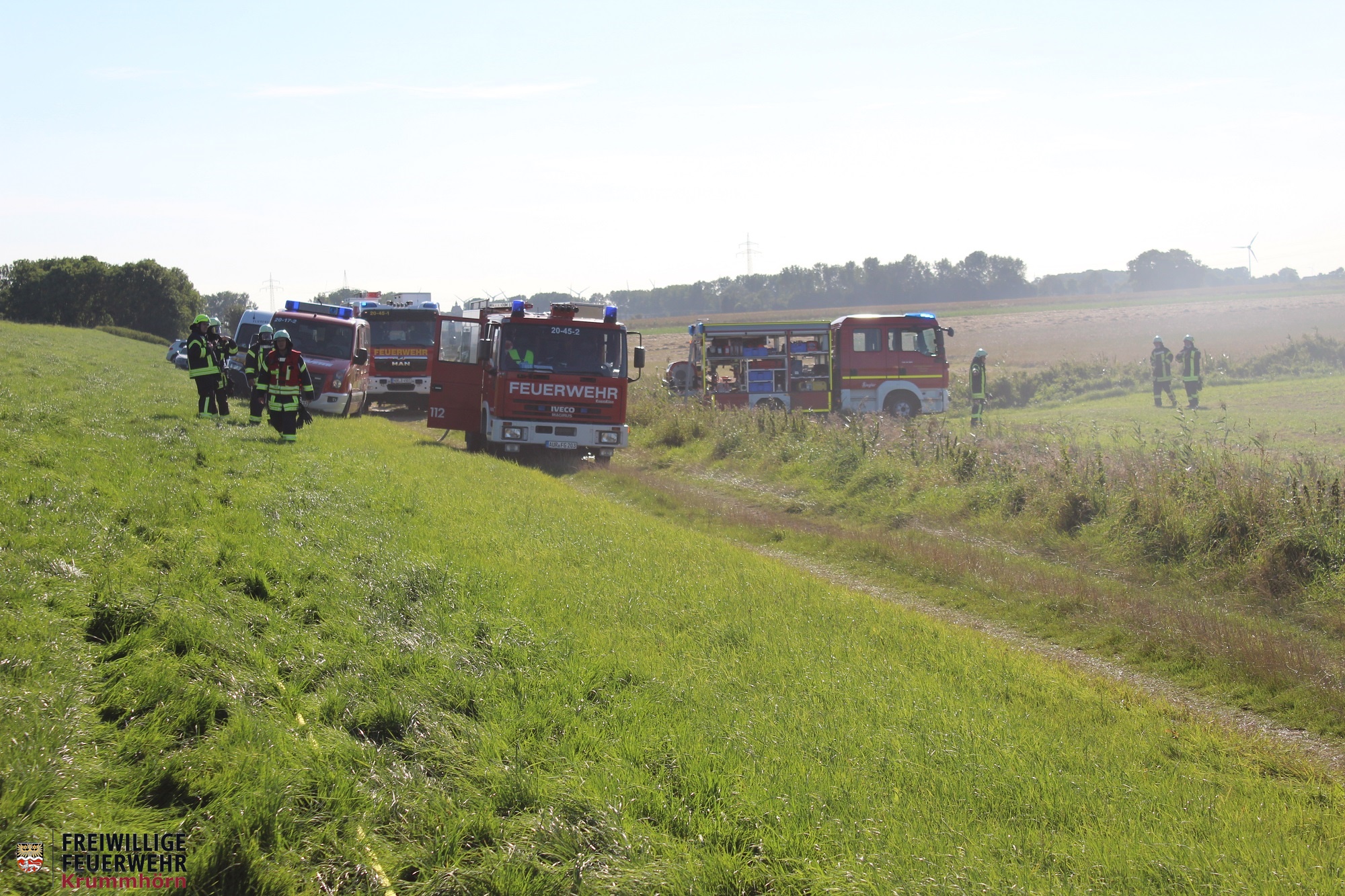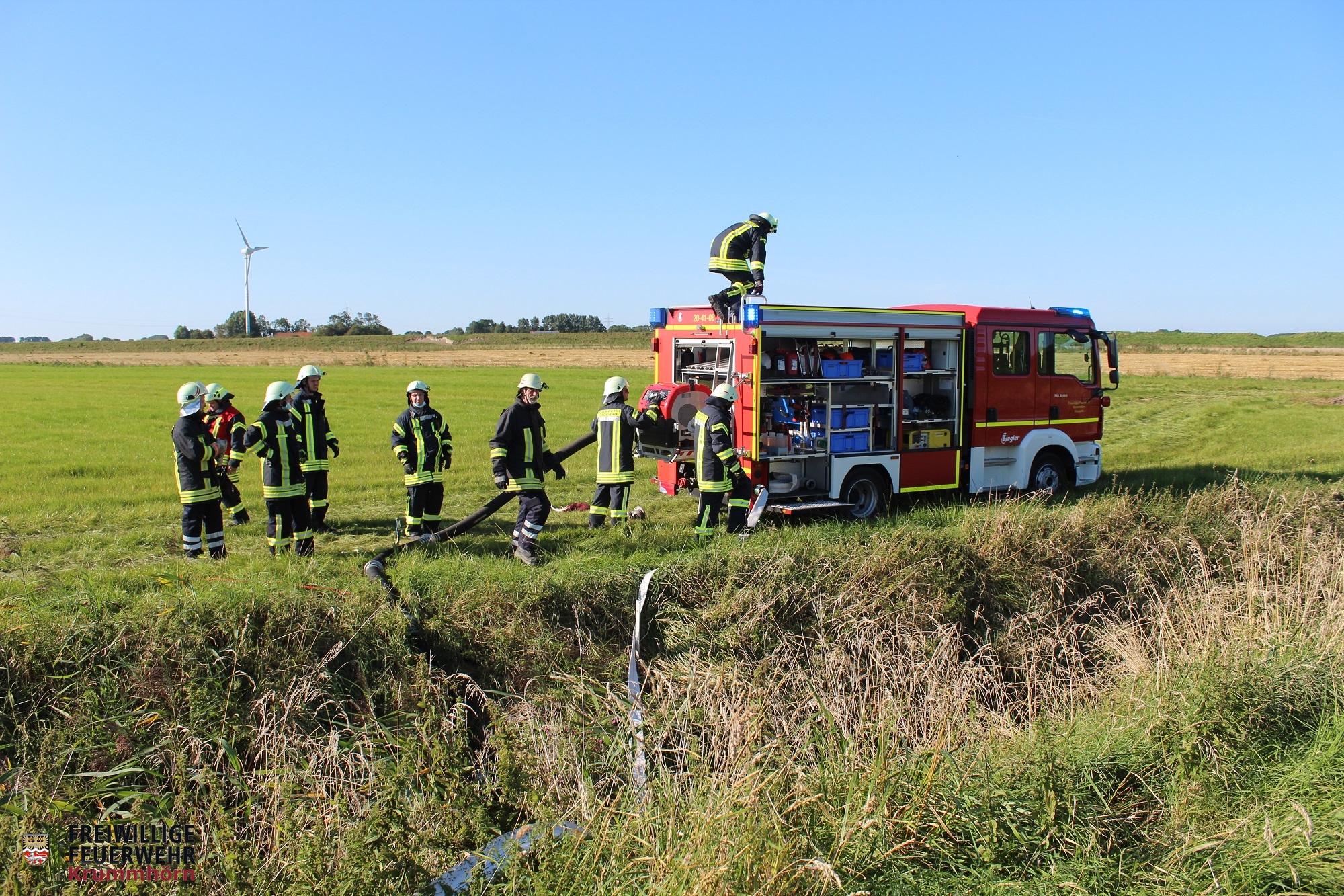 Parallel dazu bereitete die Ortsfeuerwehr Visquard eine Löschwasserentnahme aus dem angrenzenden Magotspolderdeichschloot vor, die jedoch nicht mehr genutzt werden musste.