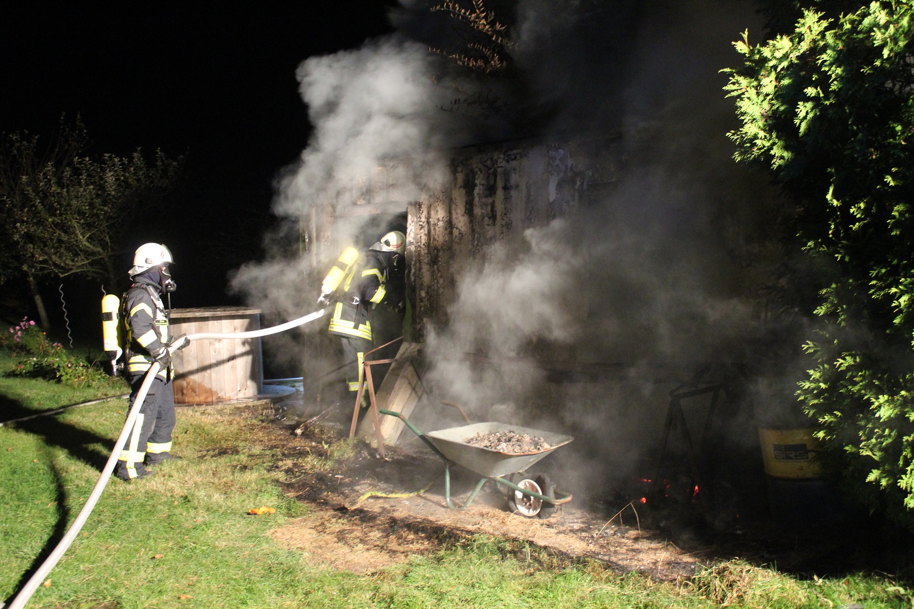 Als die Einsatzkräfte vor Ort eintrafen, brannte der 20-Fuß-Container im Inneren bereits vollständig. Zwei Trupps, davon ein Trupp unter Atemschutz, konnten das Feuer zügig löschen.