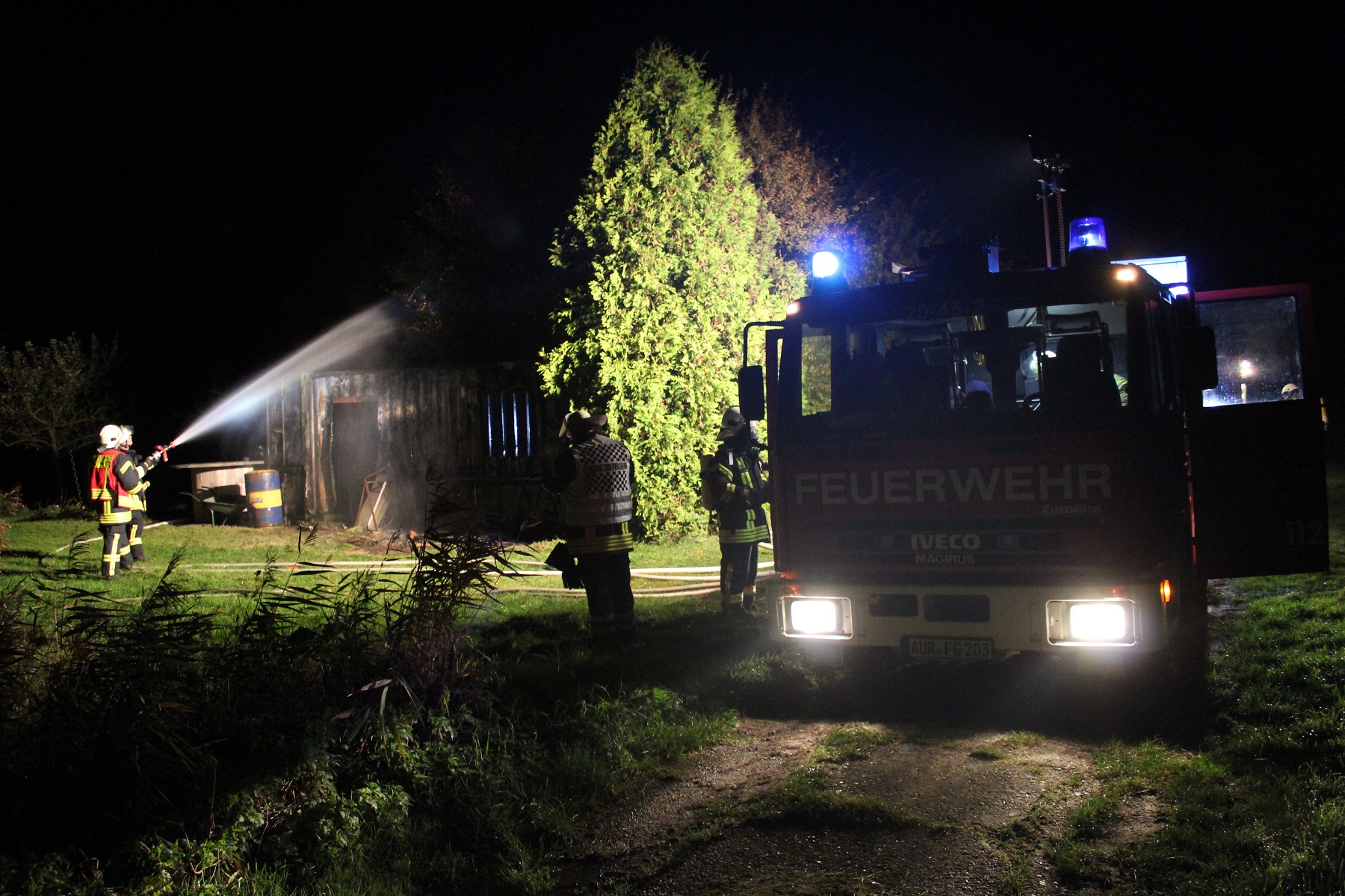 Zu einem brennenden Container musste die Feuerwehr Krummhörn-Ost am frühen Samstagmorgen gegen 5 Uhr in den Alt-Damhuser-Weg in die Krummhörner Ortschaft Uttum ausrücken.