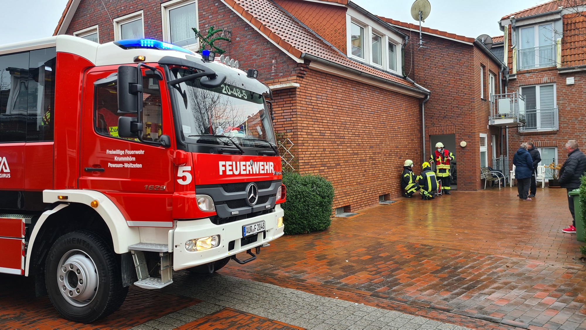 Die Feuerwehr Pewsum-Woltzeten ist am 24.12.2021 gegen 13:20 Uhr zu einem Mehrfamilienhaus in die Pewsumer Burgstraße alarmiert worden.