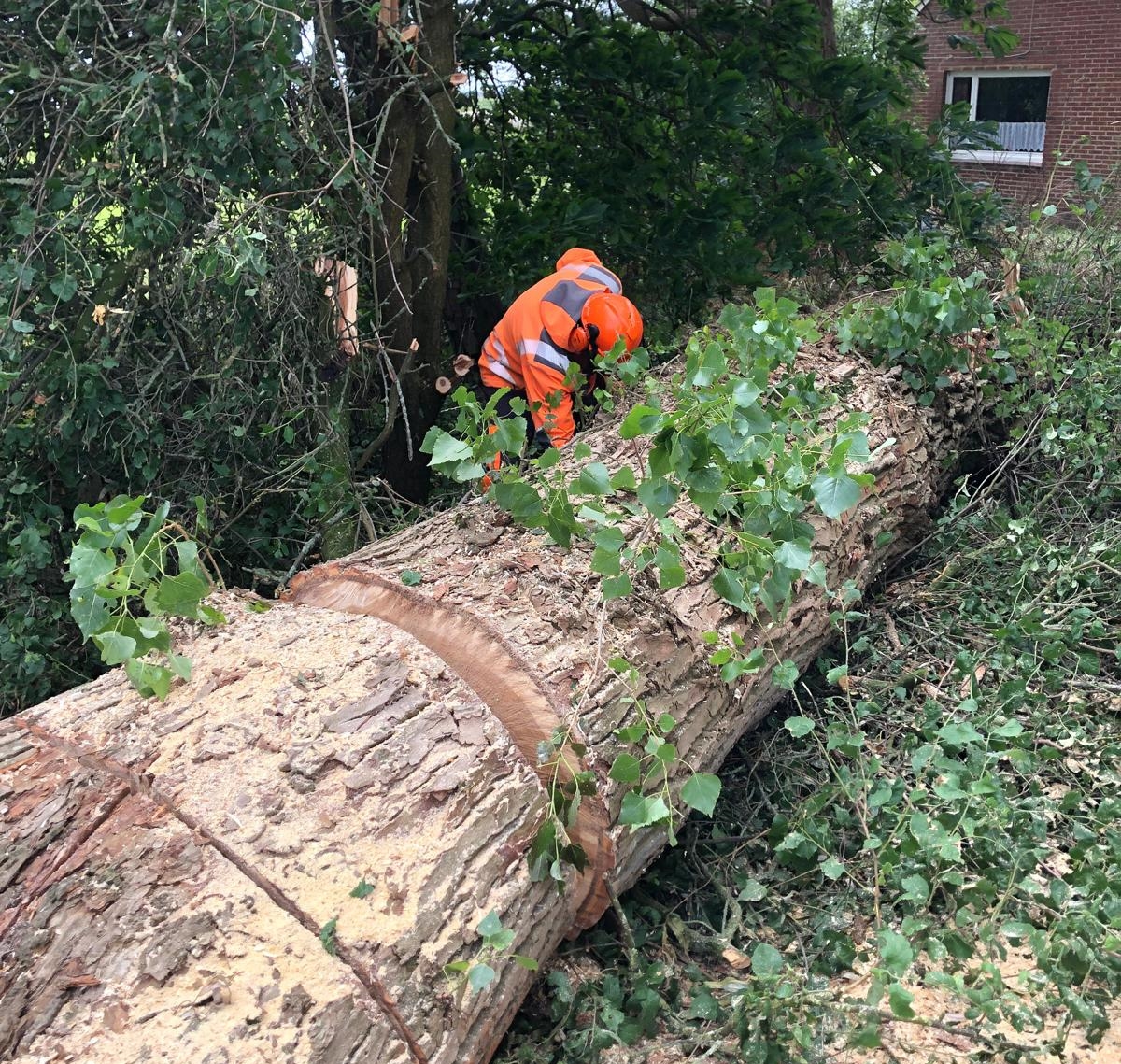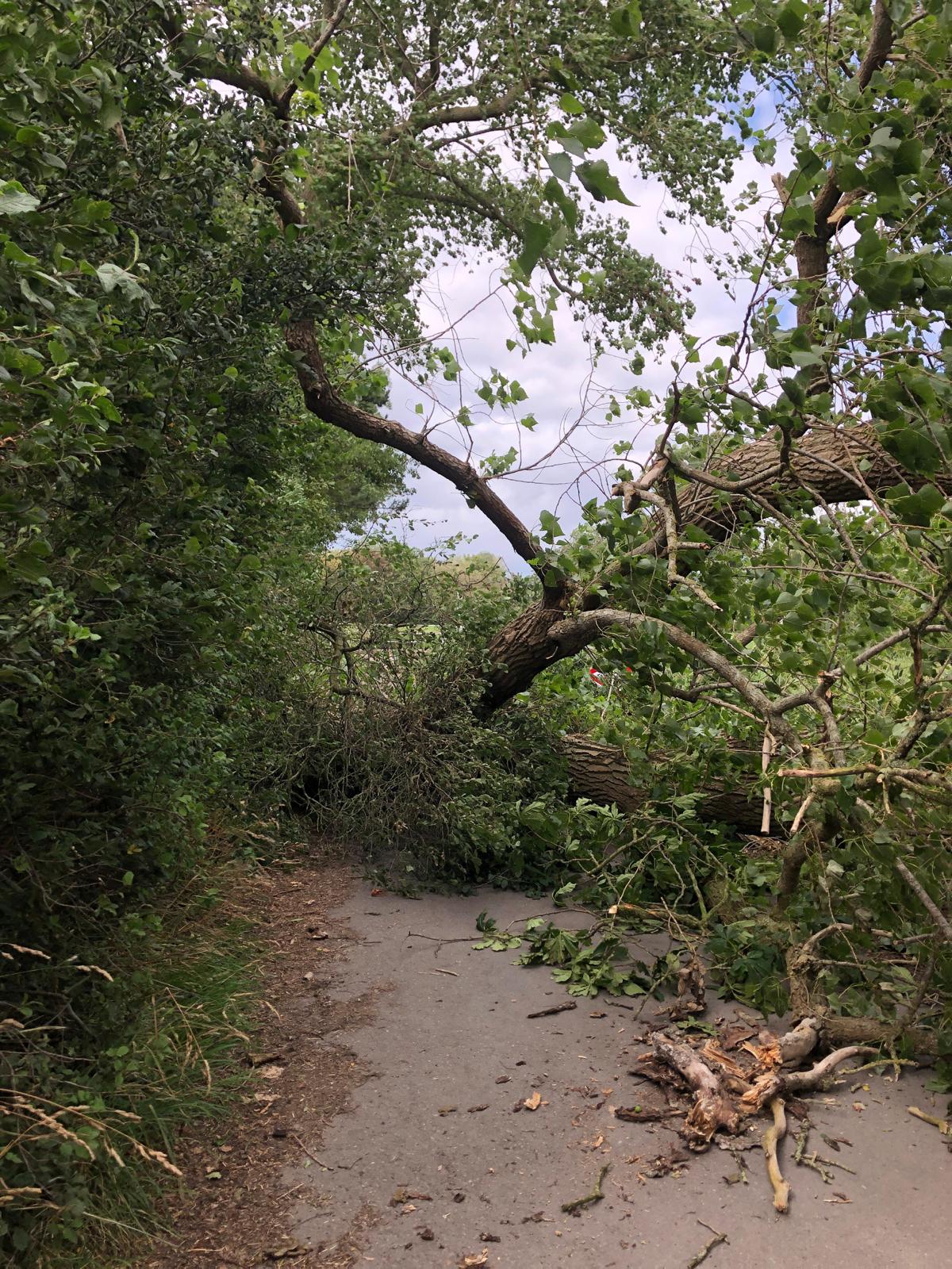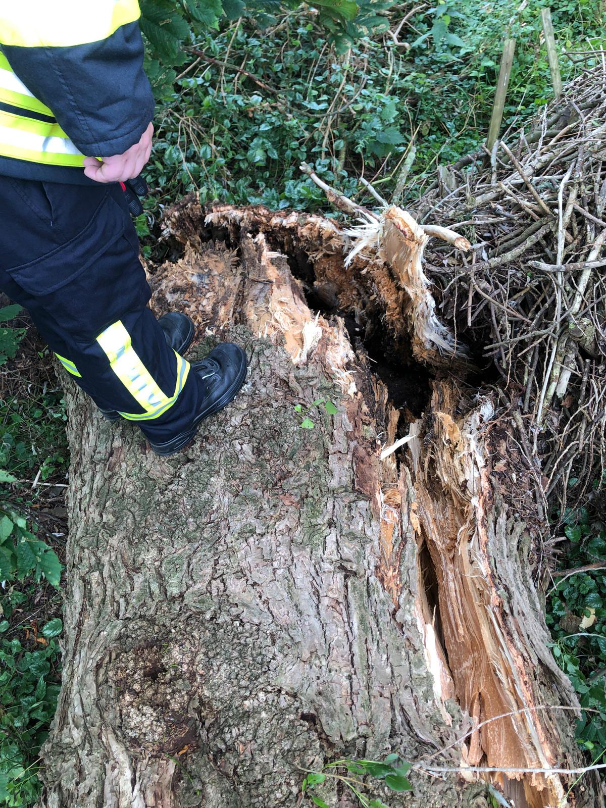 Ein umgestürzter Baum hat am Sonntagnachmittag die Feuerwehr Visquard im Appinger Weg beschäftigt.
