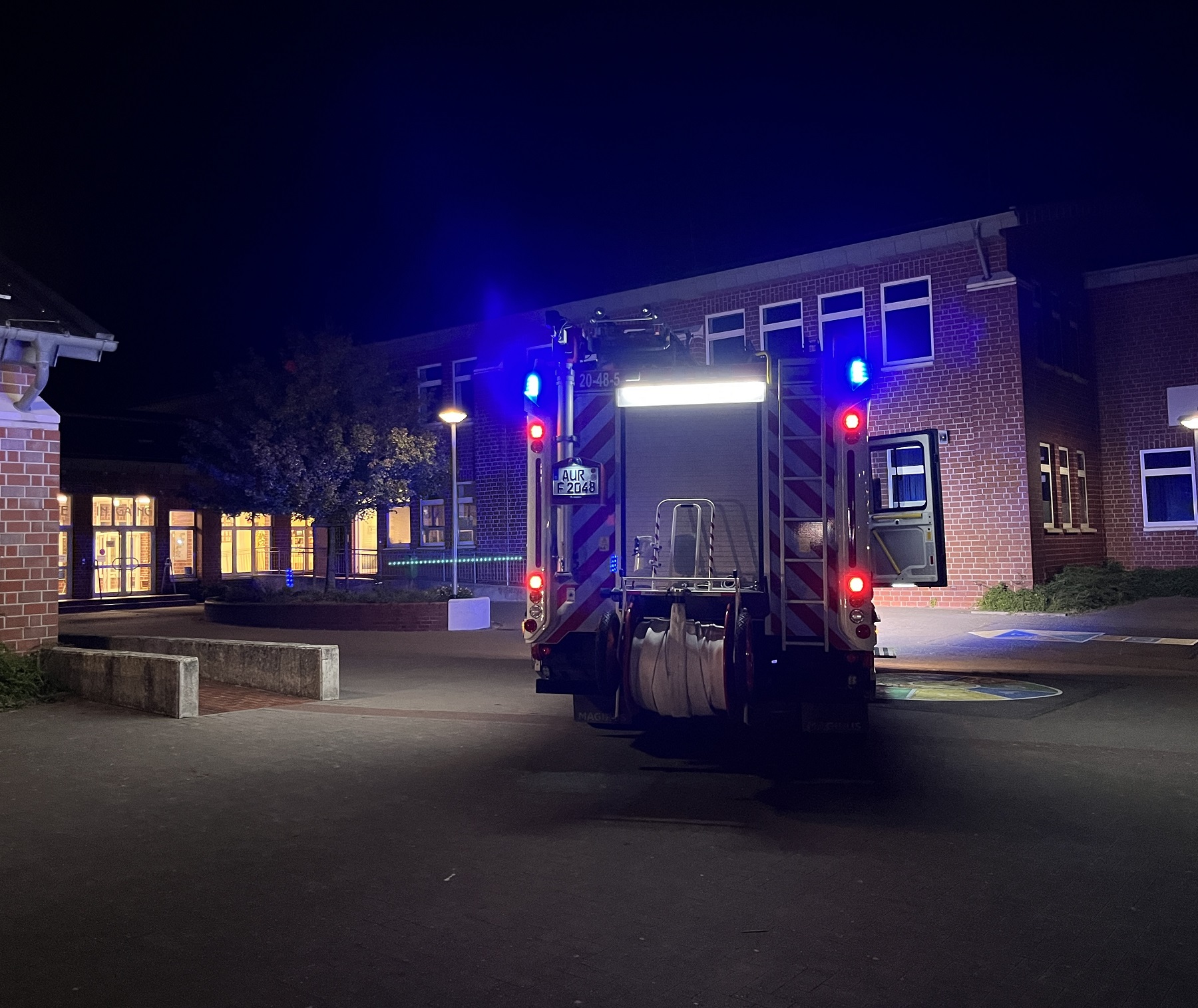 Die Ortsfeuerwehr Krummhörn-Mitte ist am Samstagabend um 21:18 Uhr in den Bunten Weg alarmiert worden, weil die Brandmeldeanlage des dortigen Schulzentrums ein Feuer meldete.