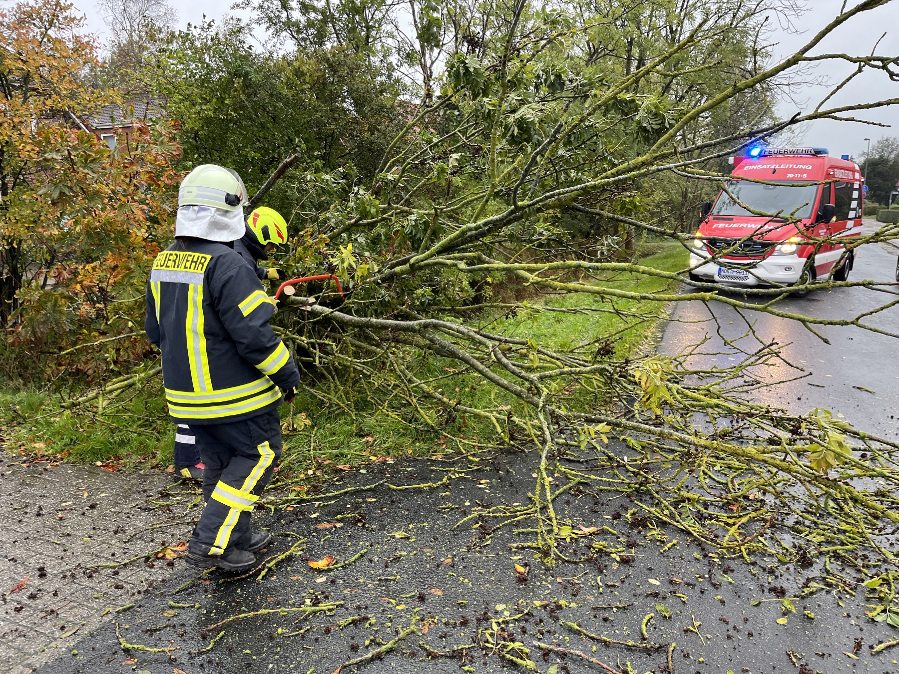 Am Freitagnachmittag ist die Feuerwehr Krummhörn-Mitte zu einem Sturmschaden in die Pewsumer Cirksenastraße alarmiert worden. Entgegen der ersten Meldung befand sich die Einsatzstelle jedoch in der Woltzetener Straße.