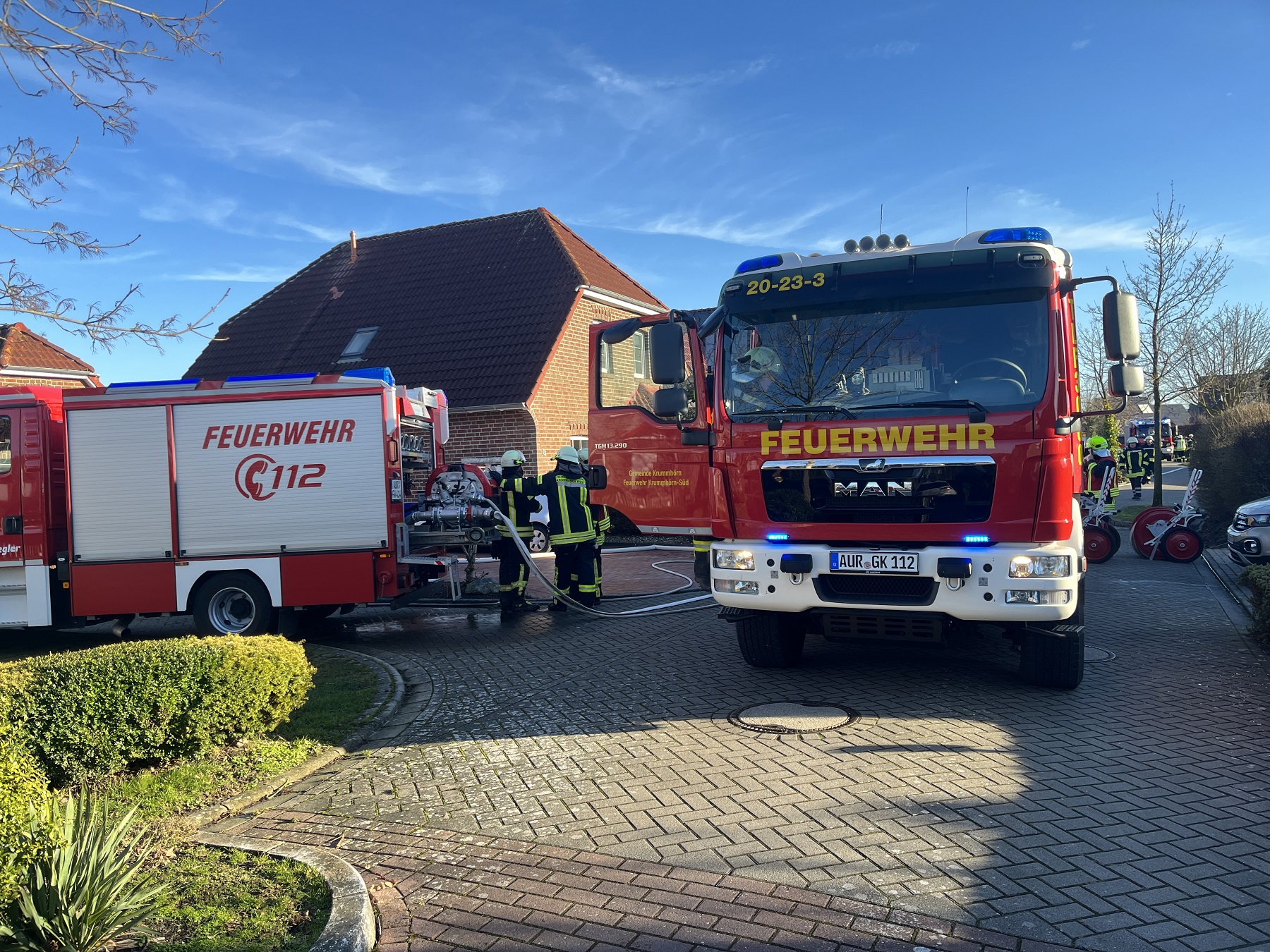 Im Einsatz waren die Feuerwehren Krummhörn-West, Krummhörn-Mitte, Krummhörn-Süd, der Rettungsdienst des Landkreises Aurich mit einem Rettungswagen und die Polizei.