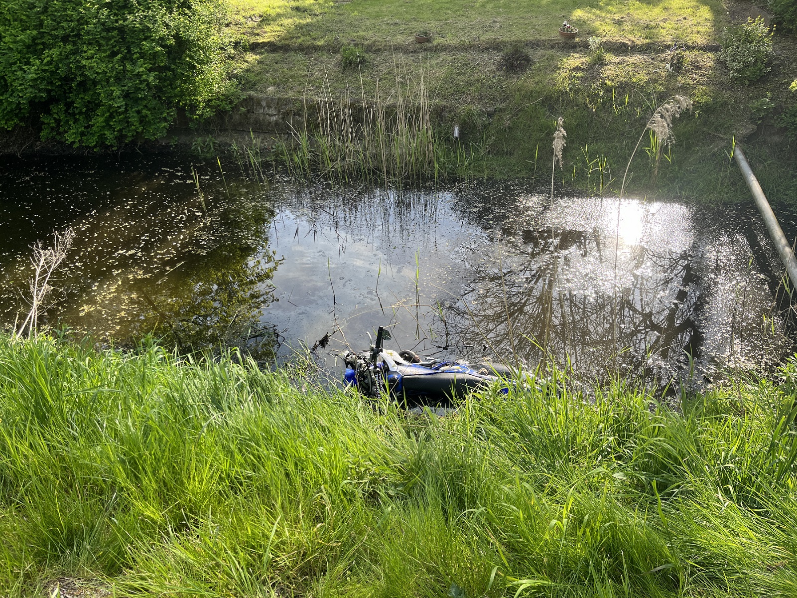 Infolgedessen liefen Betriebsstoffe aus dem Kraftrad aus, welche sich auf der Wasseroberfläche verteilt hatten.
