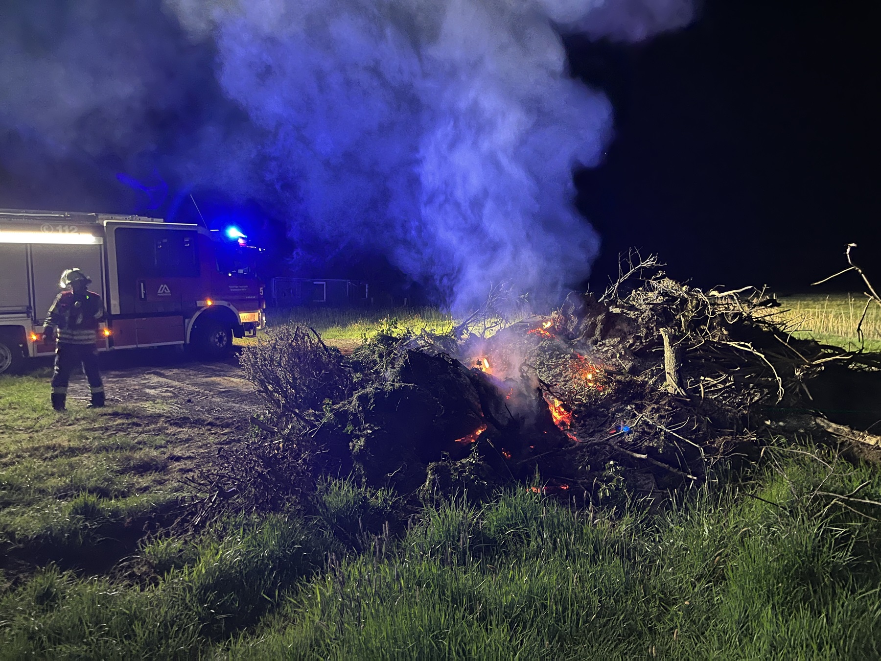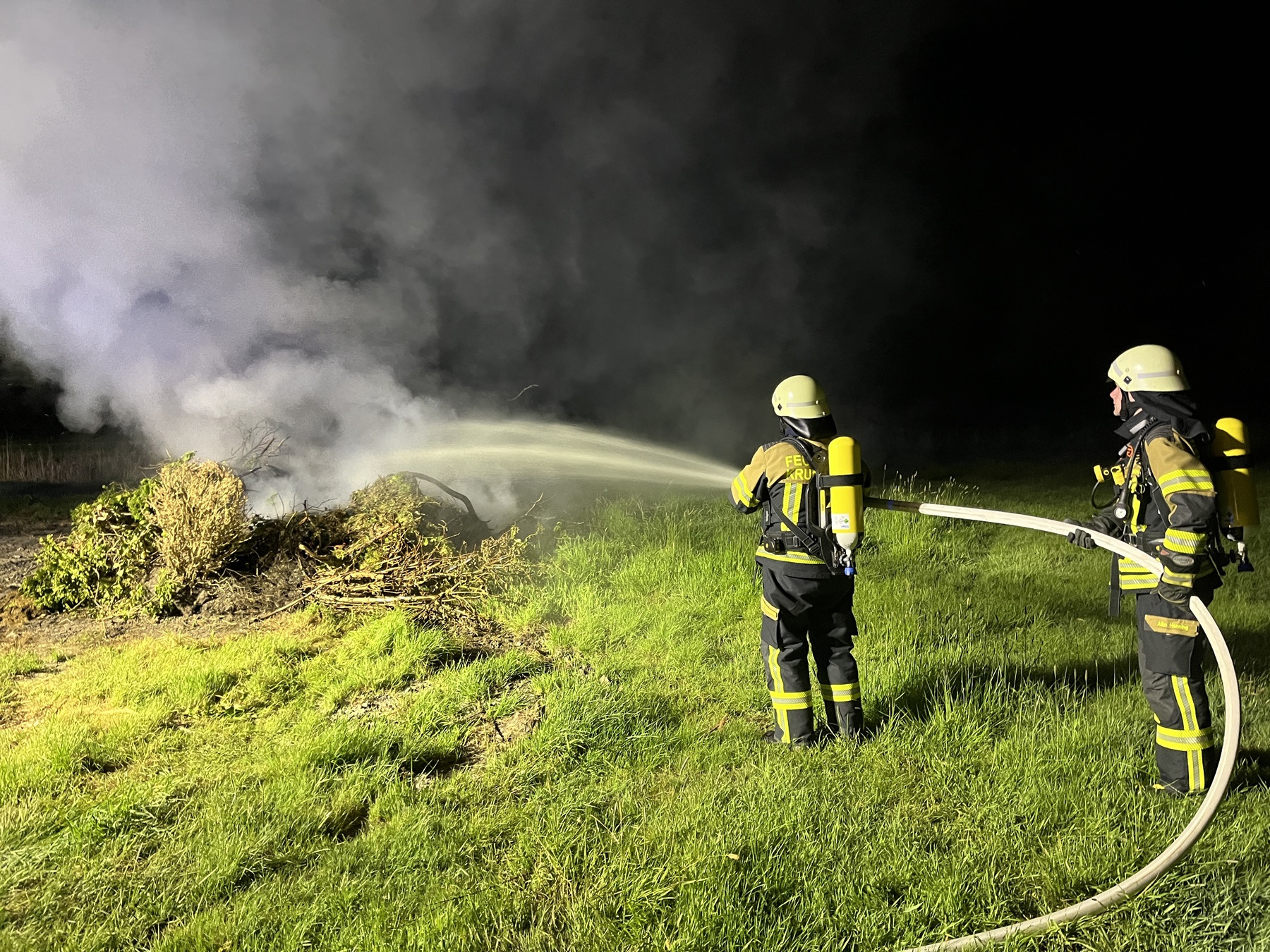 In der Nacht von Montag auf Dienstag wurde die Feuerwehr Krummhörn-Mitte um 02:19 Uhr in die Straße An der Brücke nach Woltzeten gerufen. Überreste eines abgebrannten Osterfeuers waren dort wieder aufgeflammt. Anwohner hatten die Rauchentwicklung und den Feuerschein bemerkt und die Feuerwehr verständigt. Die ausgerückten Einsatzkräfte der Feuerwehr Krummhörn-Mitte löschten die brennenden Überreste ab.