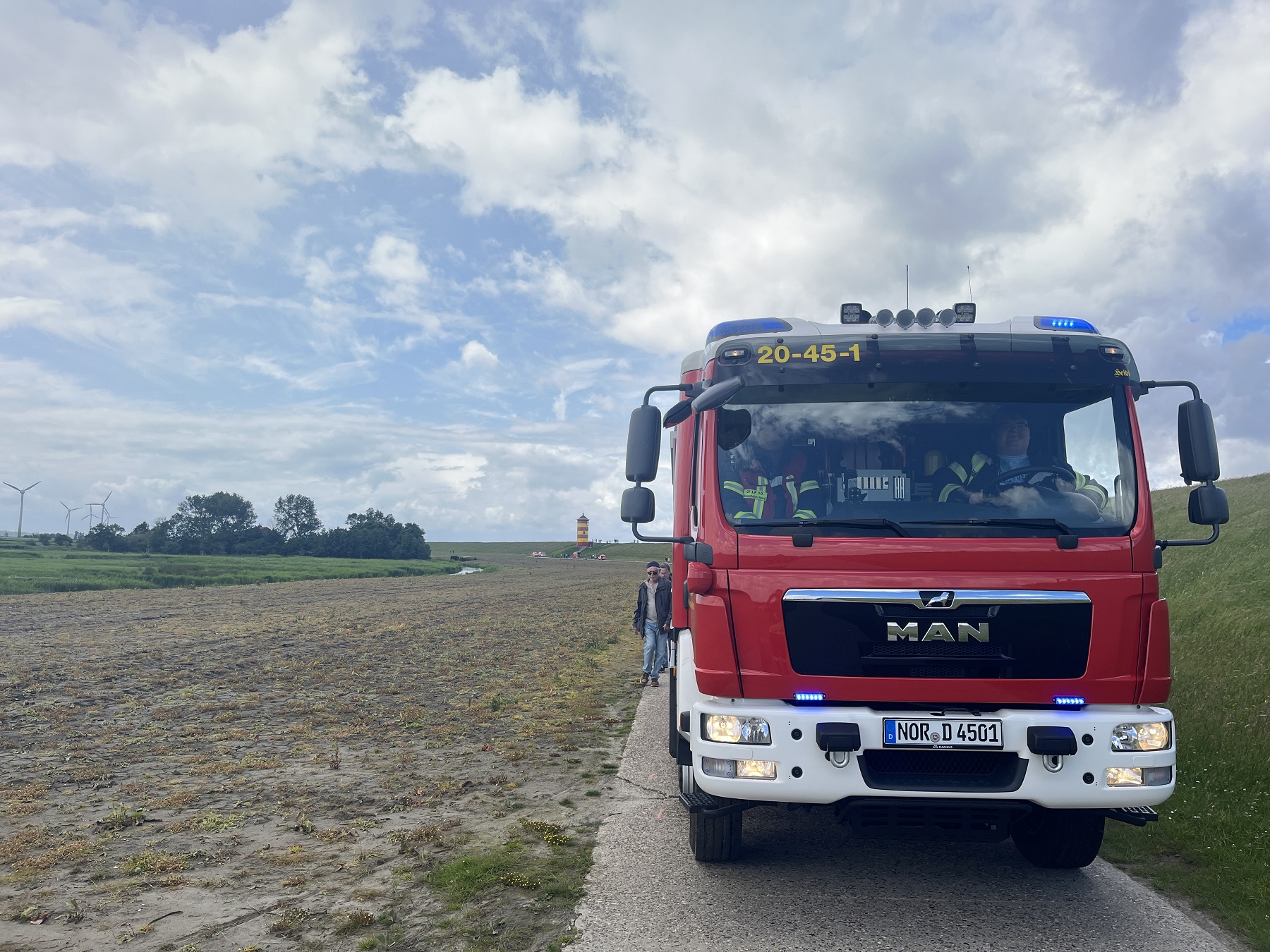 Seitens der Feuerwehr waren die Feuerwehr Krummhörn-Nord, der Einsatzleitwagen 1 der Gemeindefeuerwehr Krummhörn sowie der in Norden stationierte Einsatzleitwagen 2, die in Middels und Norden stationierten Drohnen der Kreisfeuerwehr, Drohnengruppen aus Osterhusen und Emden, Feuerwehren Juist und Borkum, Verpflegungsgruppe Feuerwehr Krummhörn-West und das PSNV-Team der Feuerwehr Norden im Einsatz.