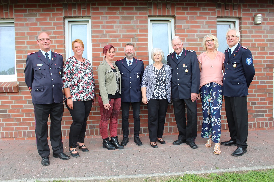 Die Mitglieder der Feuerwehr Krummhörn-Süd trafen sich am Samstagnachmittag, 18.08.2018, auf dem Gelände des FC Loquard, um mehrere Feuerwehrkameraden zu Ehren und um Beförderungen nachzuholen.