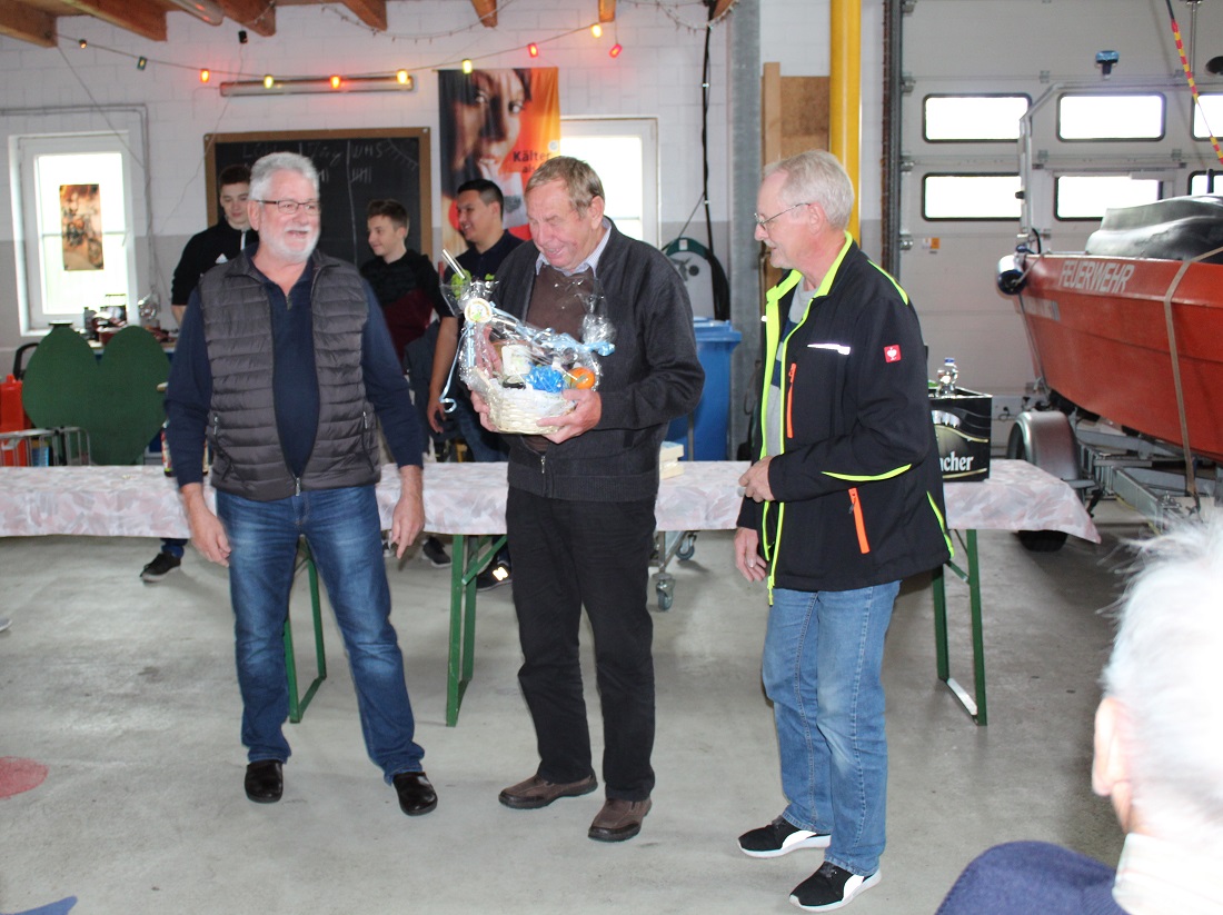Der Gemeindeseniorenbeauftragte Frerich de Vries und sein Stellvertreter Hinrikus Jürrens begrüßten die zahlreich erschienenen Alterskameraden. Die beiden übergaben Karl Saathoff, der bis zuletzt 9 Jahre lang Gemeindeseniorenbeauftragter war, ein Präsent für seine zuvor geleistete Arbeit.