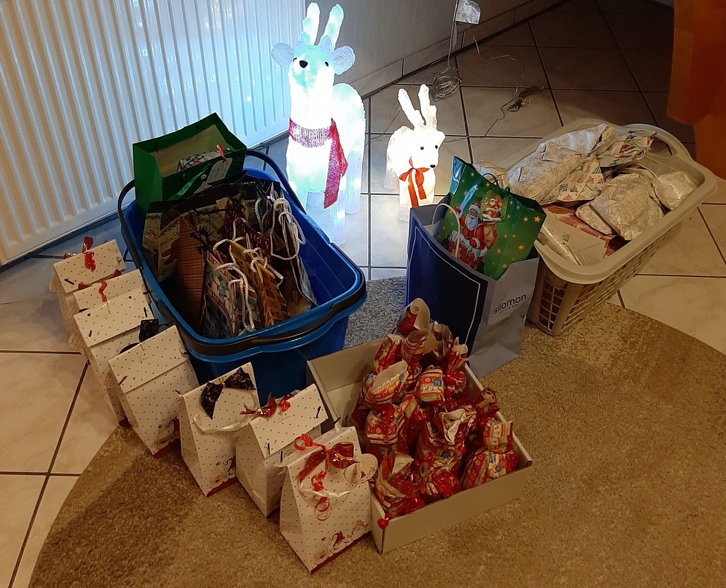 Beim Zusammenstellen der Geschenke wurden die Firegirls von Freunden und Verwandten unterstützt. Die Wichtelgeschenke sind dann am Freitag, 03.12.2021 an die Pflegeheime übergeben worden.