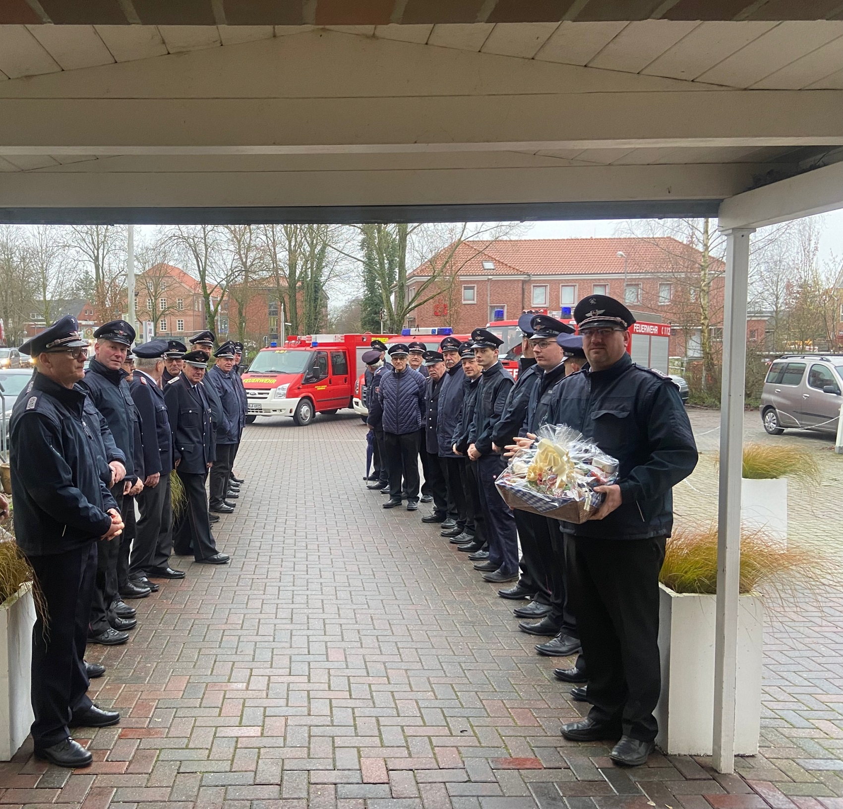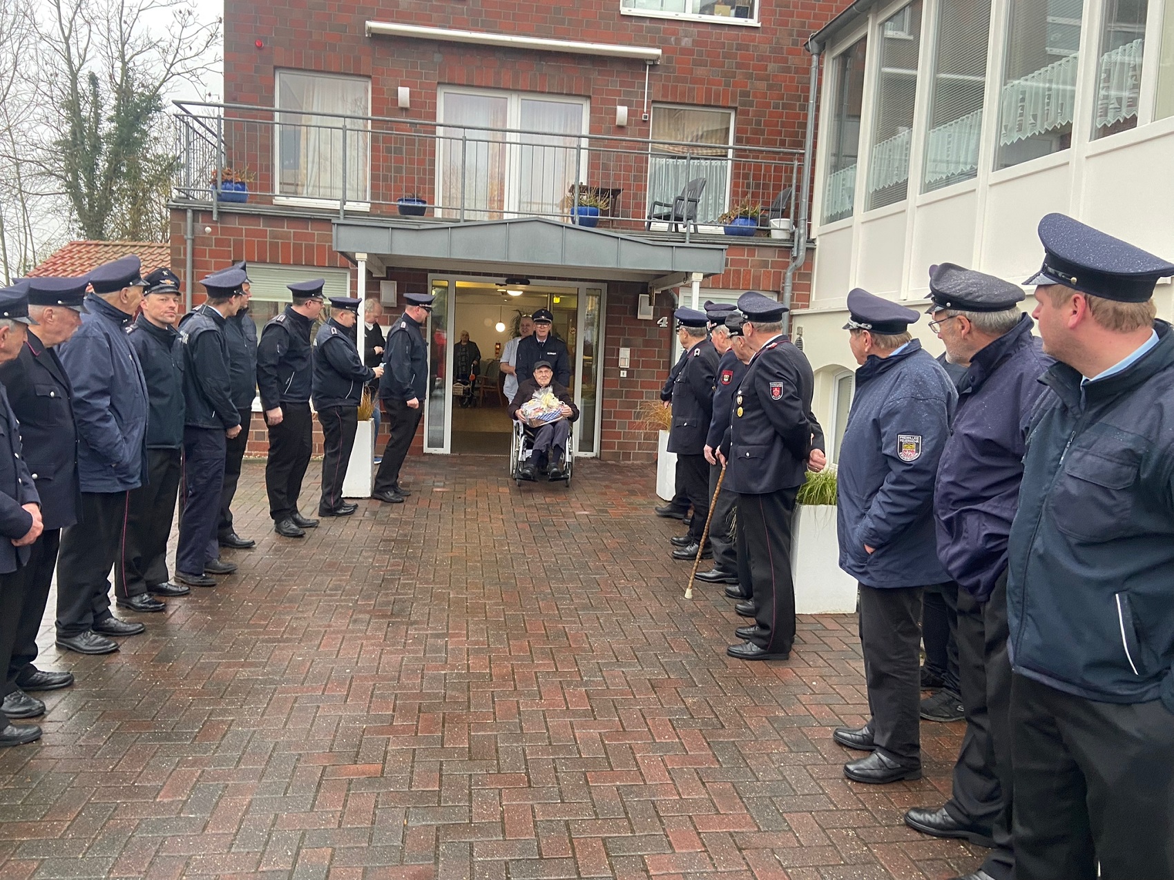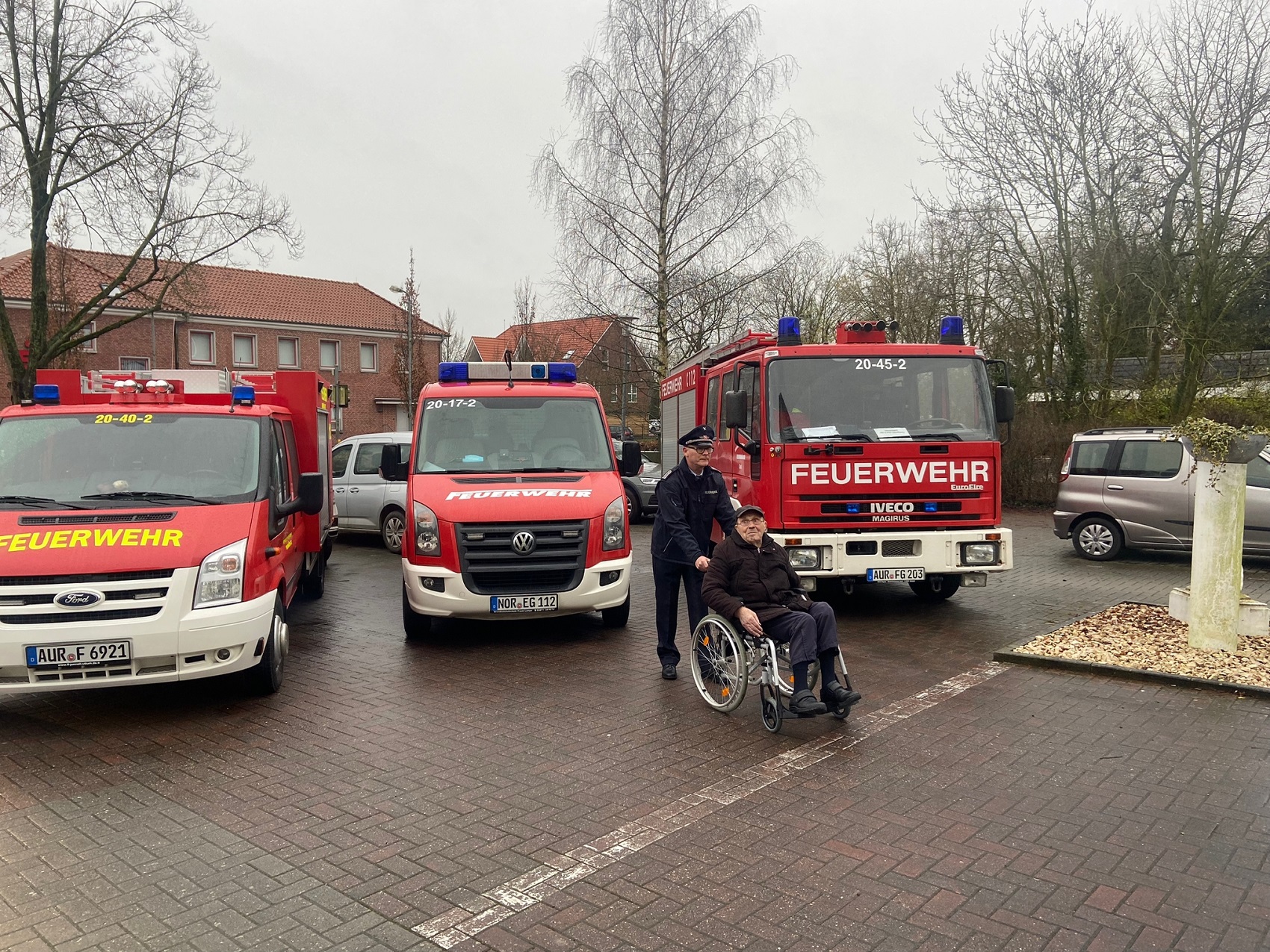 Onno Müller ist am Sonnabend, den 14.01.2023, von seinen Kameraden der Feuerwehr Krummhörn-Ost im Wohnpark Pewsum besucht worden. Grund für den Besuch war sein 75-jähriges Jubiläum in der Krummhörner Feuerwehr.