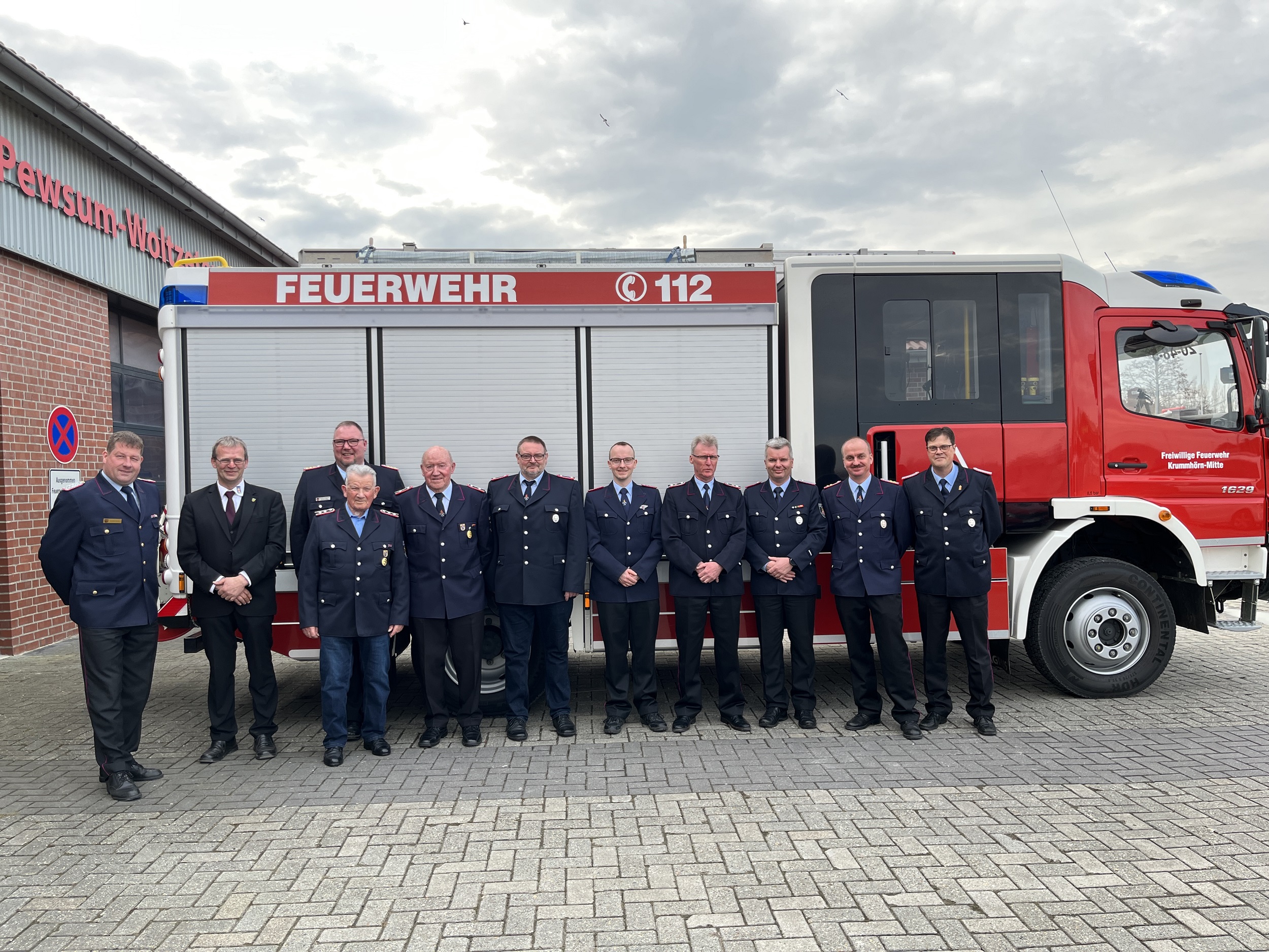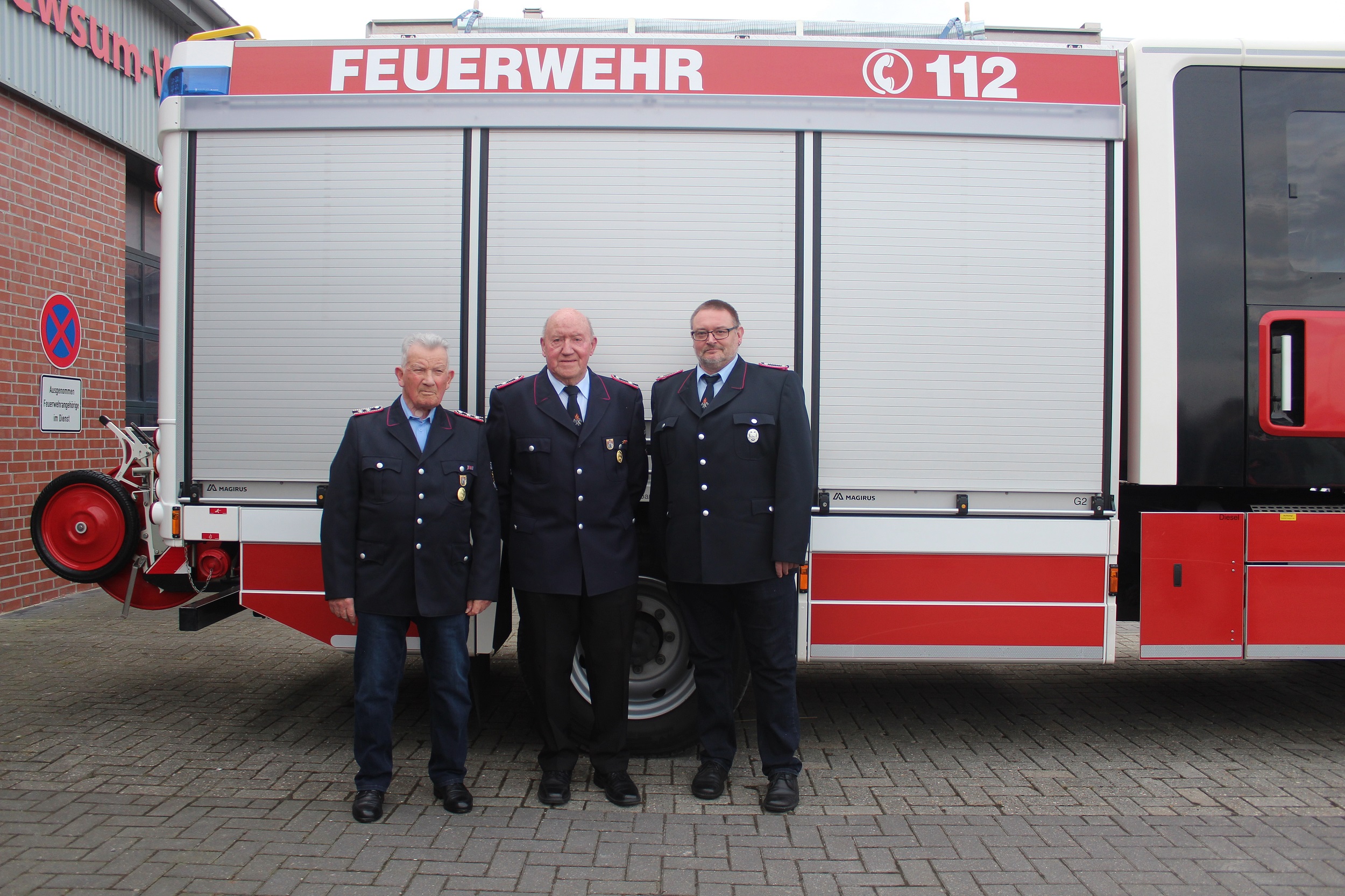 Bei der Jahreshauptversammlung der Feuerwehr Krummhörn-Mitte am Sonnabend, den 18.03.2023, sind drei Kameraden für insgesamt 145 Jahre aktiven Dienst in der Krummhörner Feuerwehr geehrt worden.
