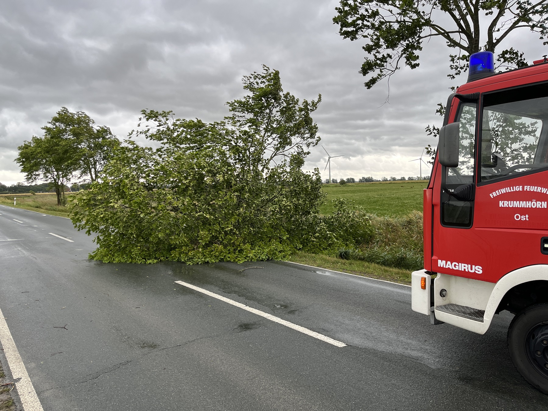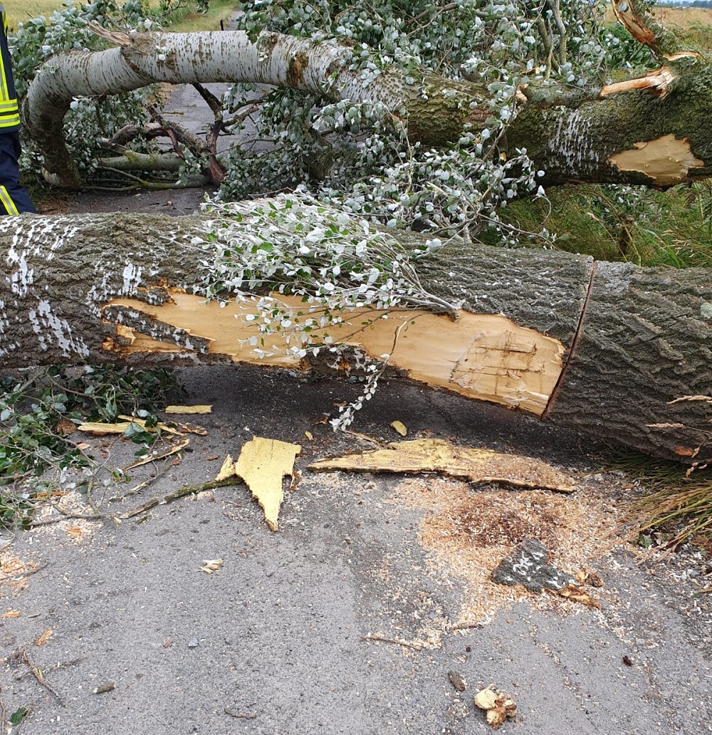Für 33 Einsätze hat das Sturmtief "Poly" am Mittwoch in der Gemeinde Krummhörn gesorgt. Los ging es zur Mittagszeit um 12:35 Uhr mit einem umgestürzten Baum in Visquard. Im Minutentakt folgten danach diverse Alarmierungen zu Sturmschäden.