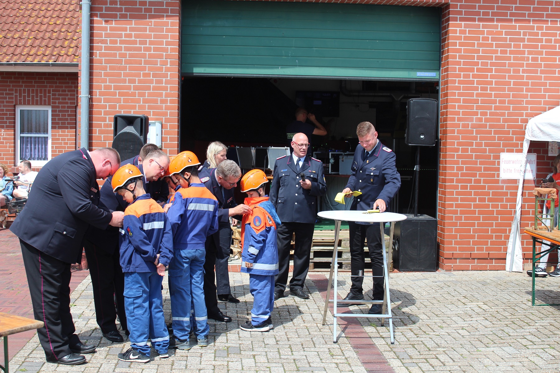 Im Rahmen des 46. Gemeindefeuerwehrtages fand am Greetsieler Feuerwehrhaus auch die Abnahme der Jugendflamme Stufe 1 statt.