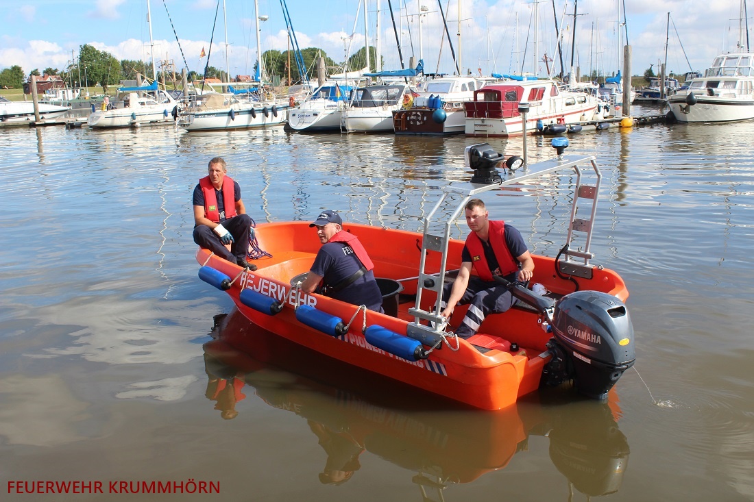 Seit heute Morgen unterstützen die Feuerwehren Krummhörn-Nord und Visquard in Greetsiel bei der Bergung von vielen verendeten Fischen.