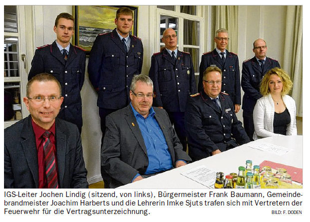Read more: Jahreshauptversammlung der Ortsfeuerwehr Groothusen-HamswehrumAm Freitag, den 02.02.2017 fand um 18:00 Uhr eine wichtige Vertragsschließung im Rathaus in Pewsum statt. Dabei wurde der Kooperationsvertrag zwischen der Gemeindefeuerwehr Krummhörn sowie der IGS Krummhörn unterzeichnet. Gemeindebrandmeister Joachim Harberts unterzeichnete diesen Vertrag im Namen der Gemeindefeuerwehr, Bürgermeister Frank Baumann im Namen der Gemeinde Krummhörn und Jochen Lindig als Schulleiter der IGS Krummhörn.