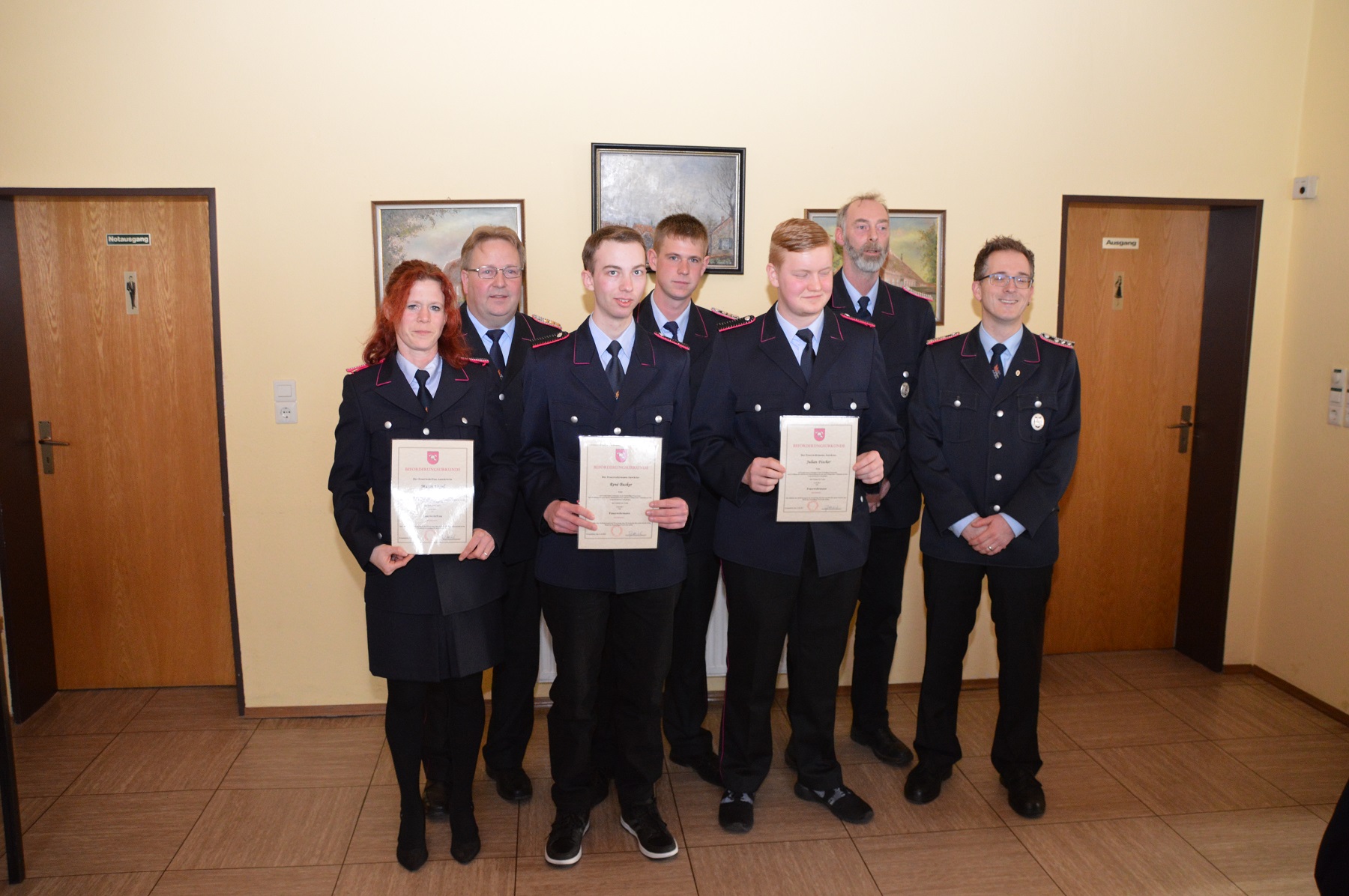Bei den Beförderungen konnte mit Alina Schink erfreulicherweise eine Kameradin zur Feuerwehrfrau ernannt werden. Die Ernennung wurde vom stellv. Gemeindebrandmeister Jan-Jürgen Lüpkes vollzogen.